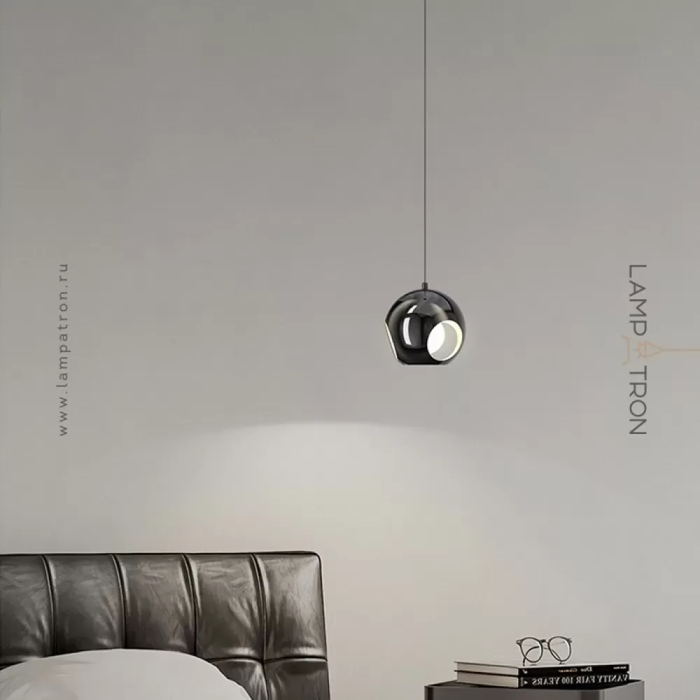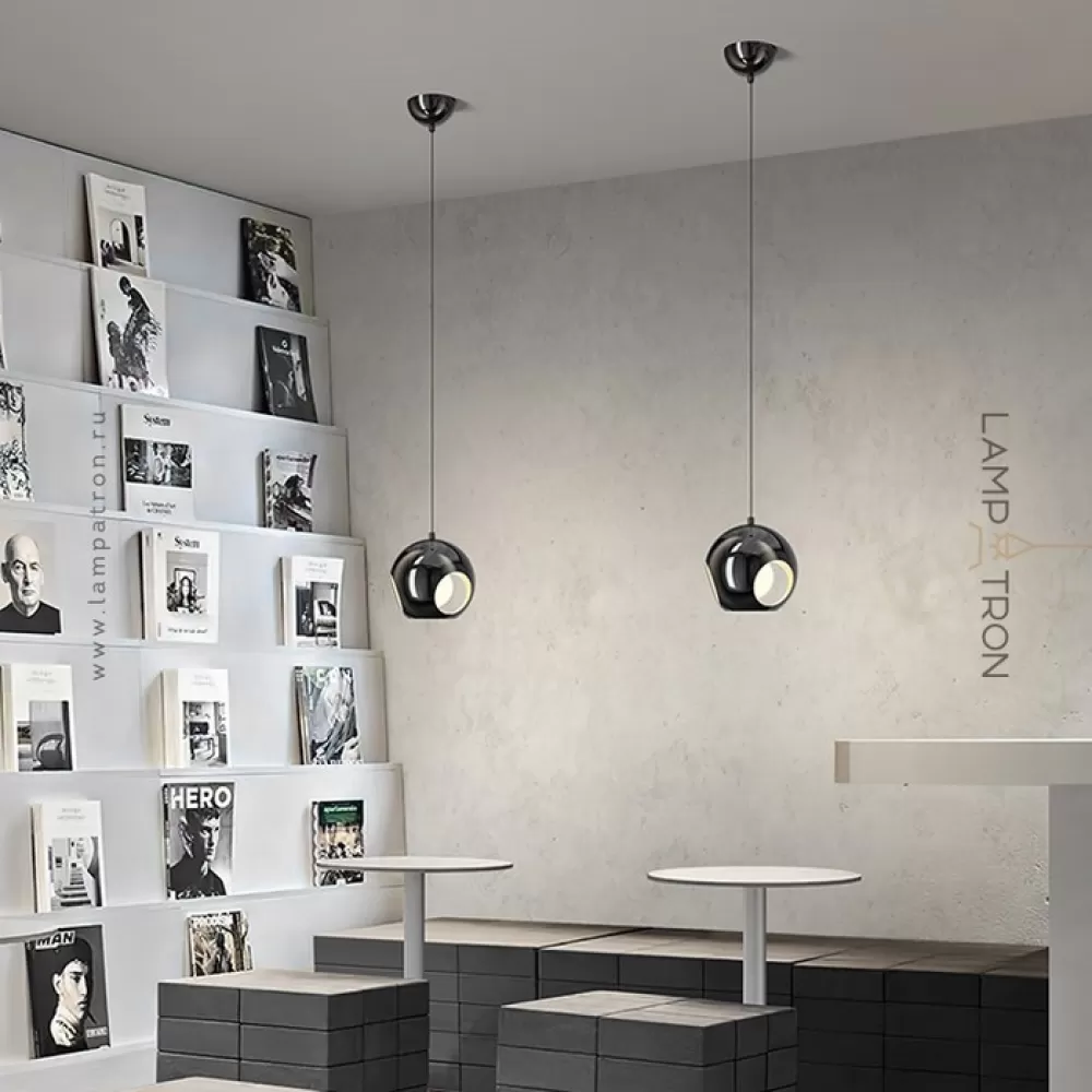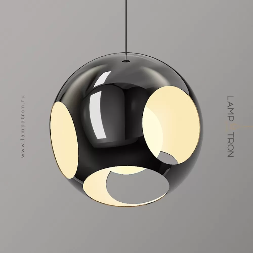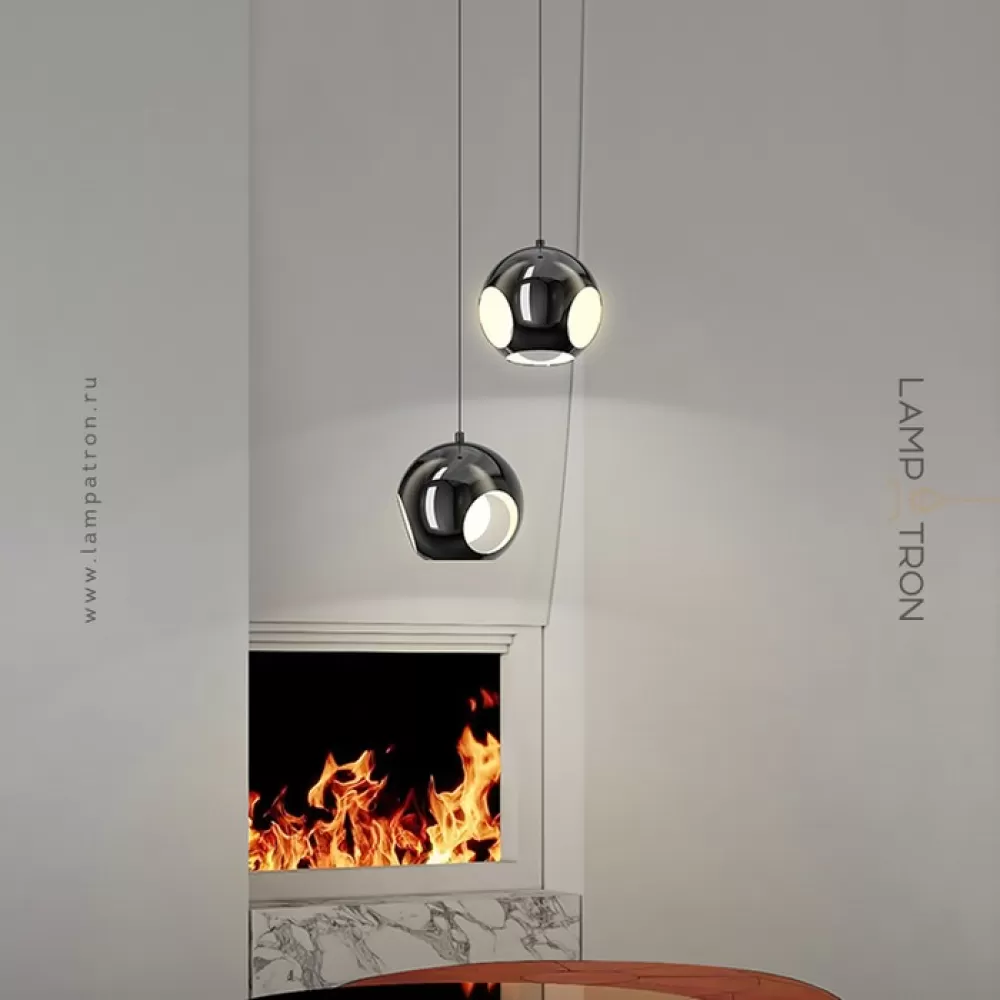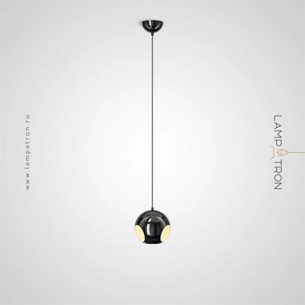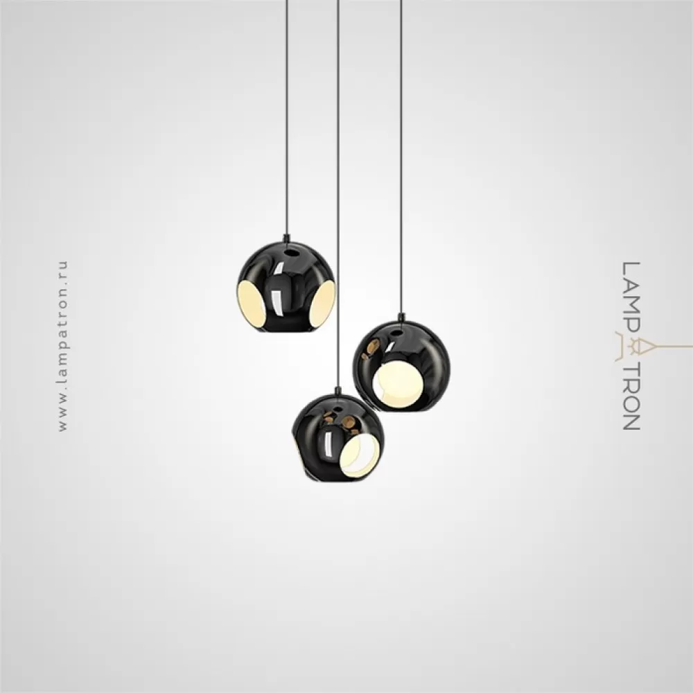 Подвесной светодиодный светильник с черным шарообразным рассеивателем из металла с тремя круглыми отверстиями