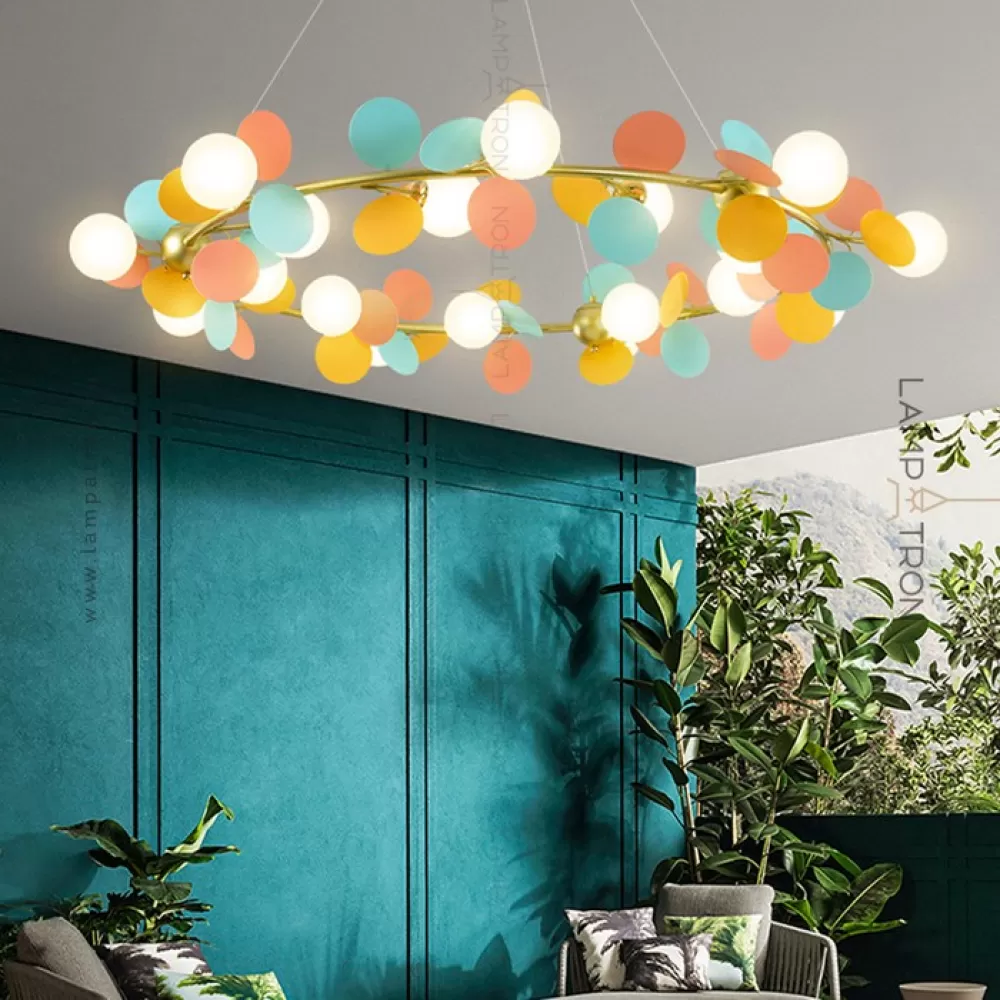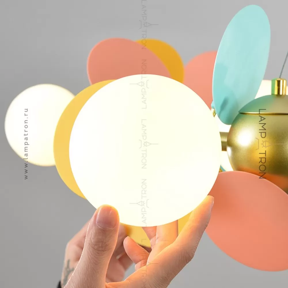 Серия кольцевых люстр с шарообразными матовыми плафонами и декоративными дисками