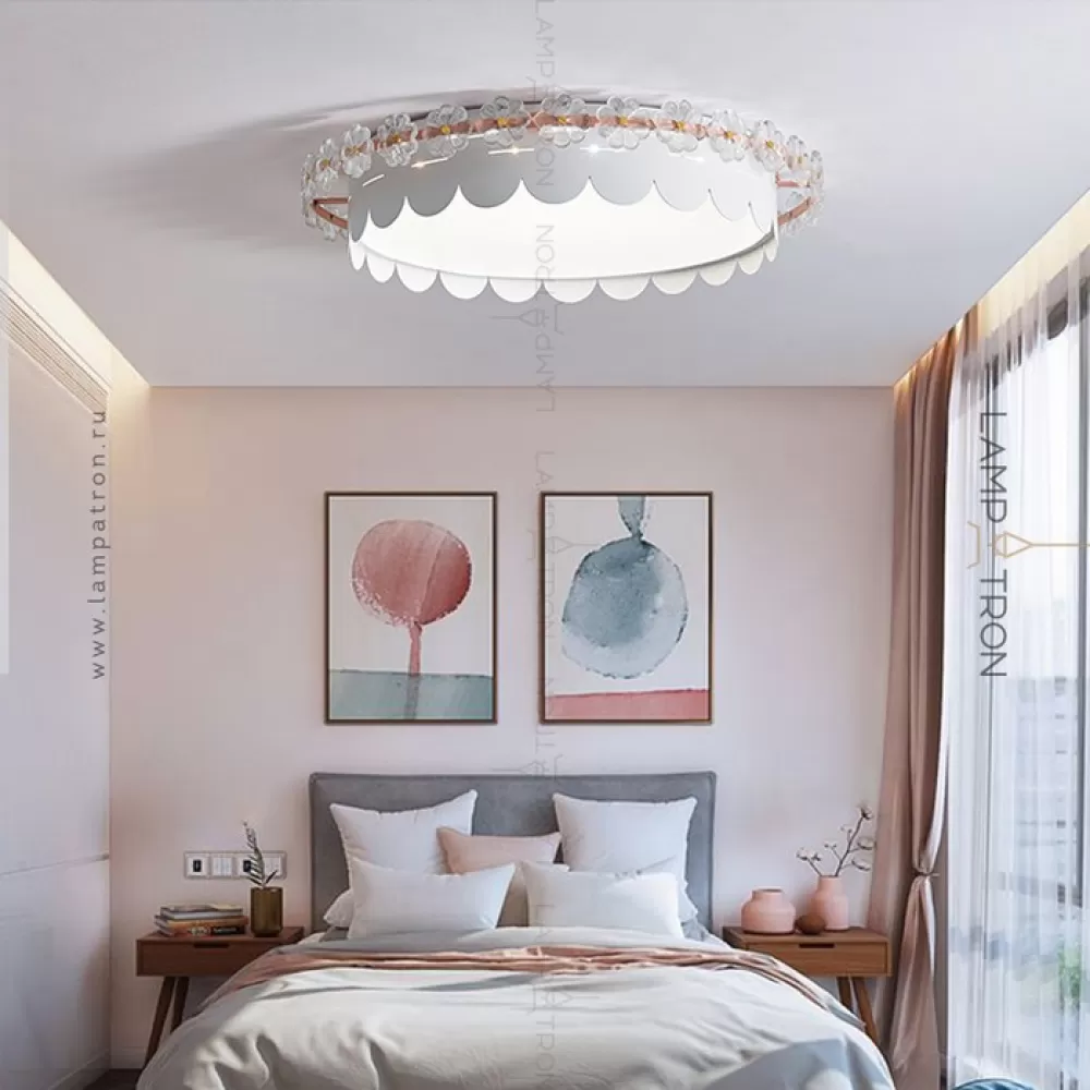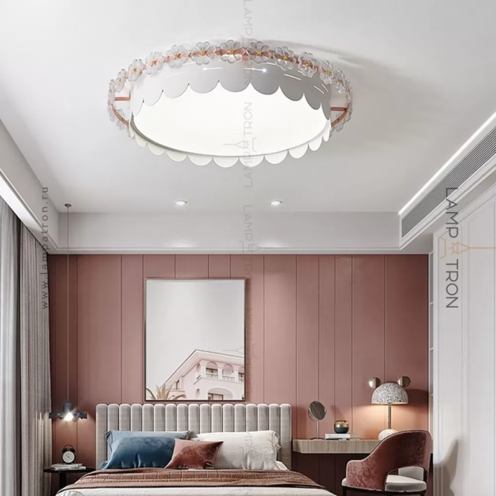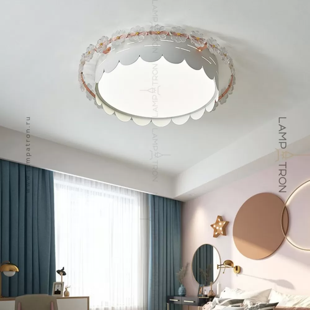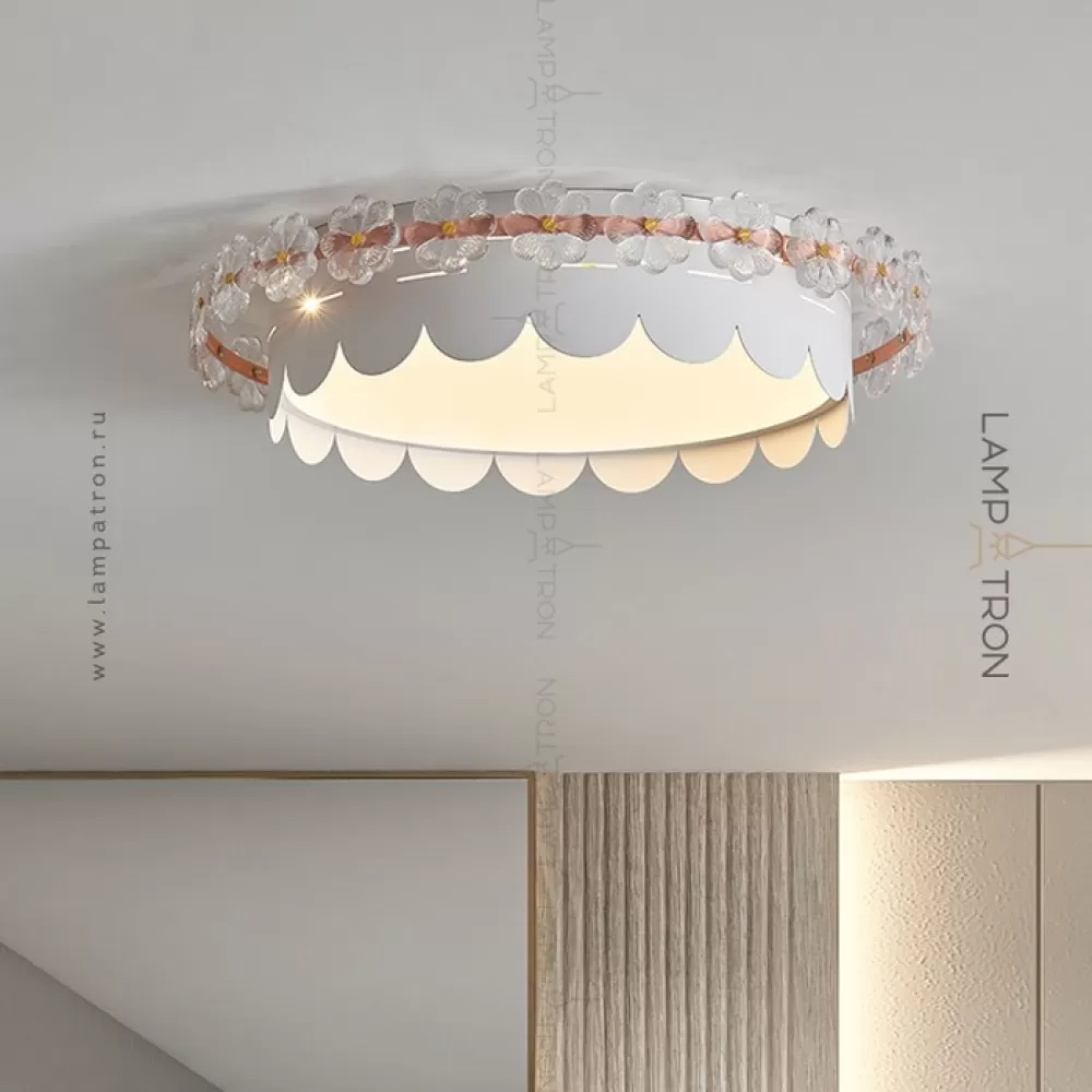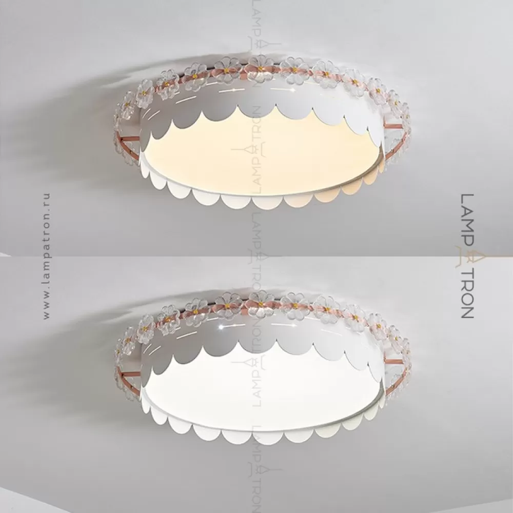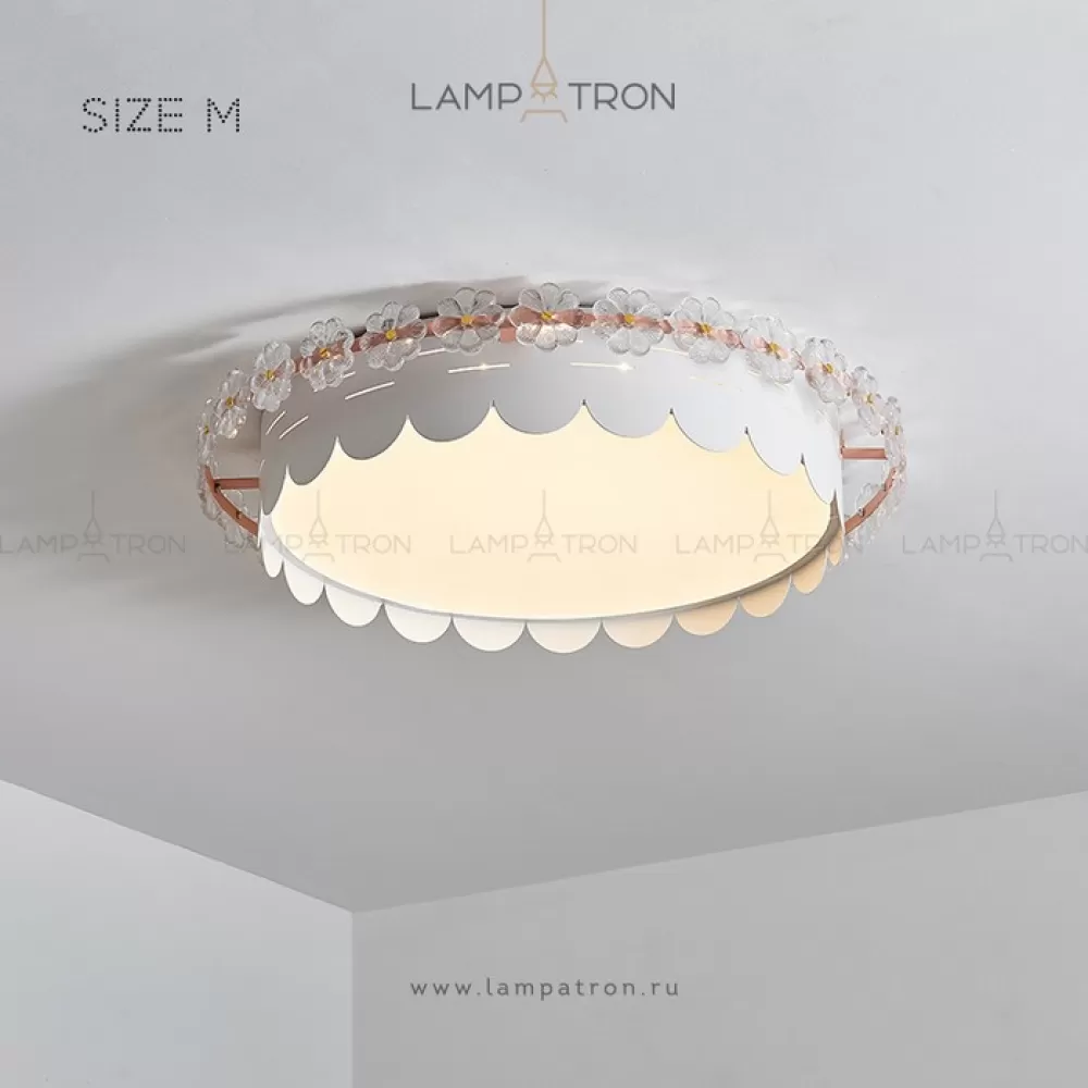 Потолочный светодиодный светильник круглой формы с декоративными прозрачными цветами по контуру корпуса