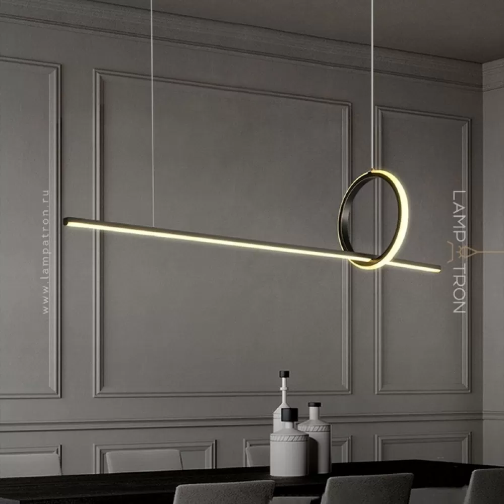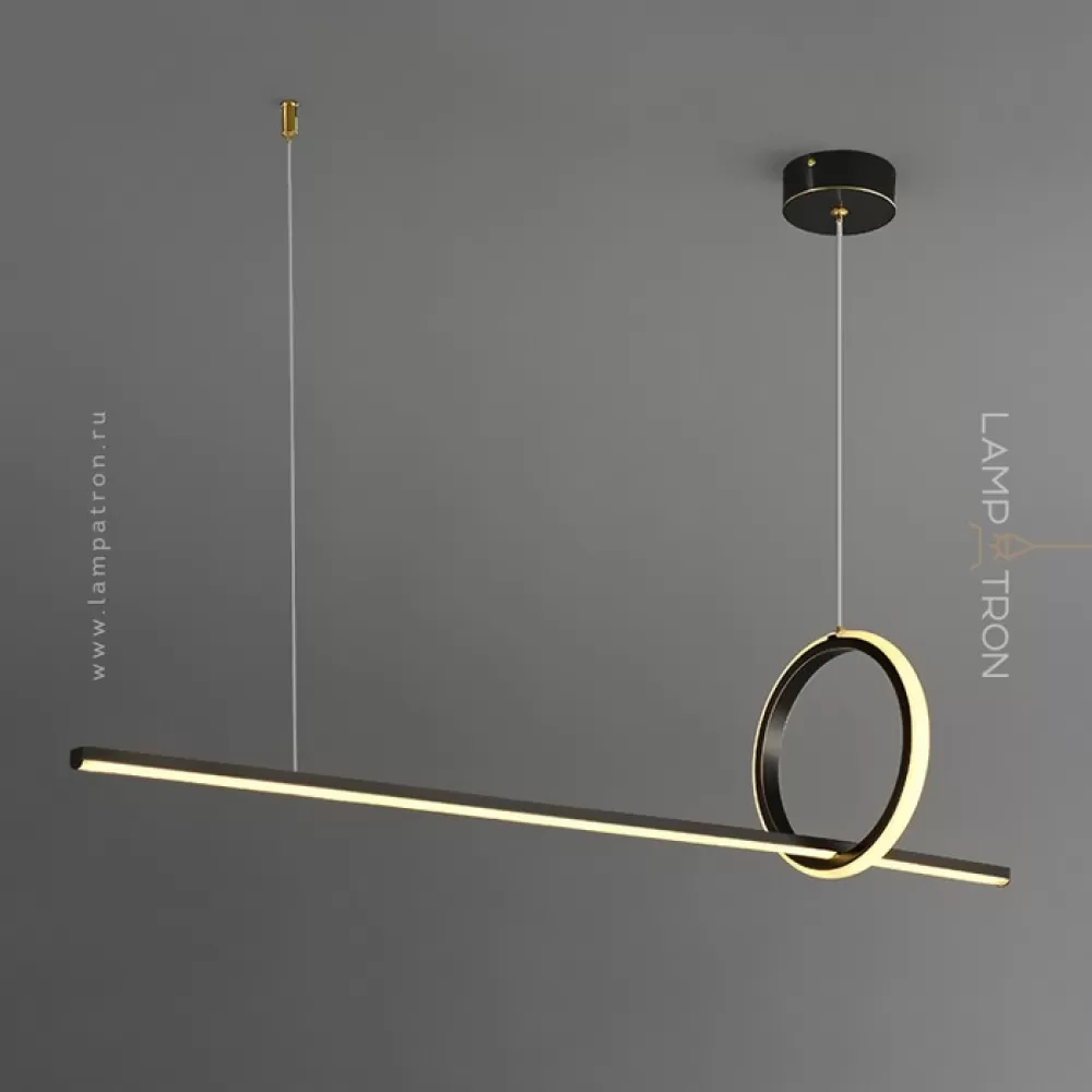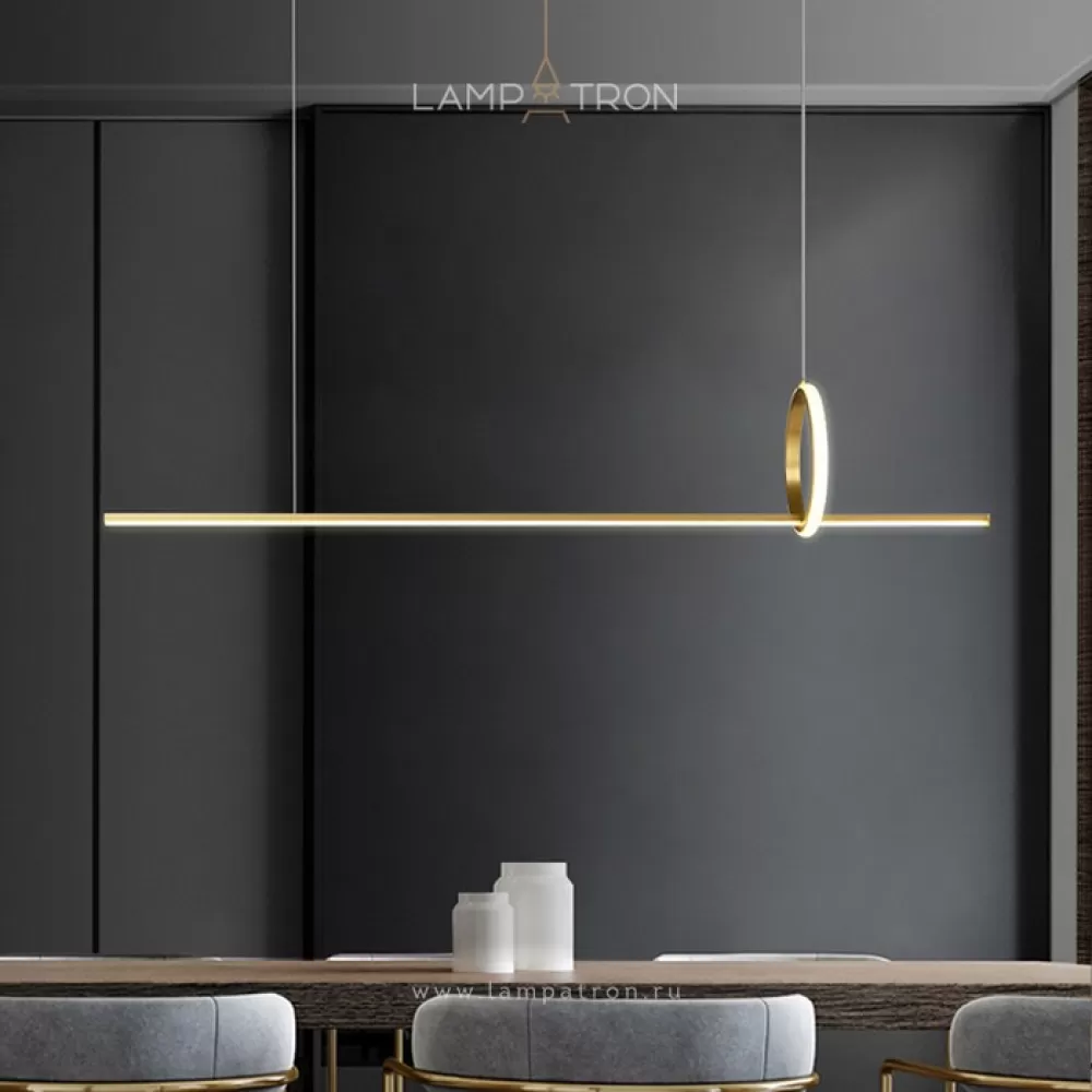 Серия светодиодных светильников в виде комбинации вытянутой светящейся рейки и кольца