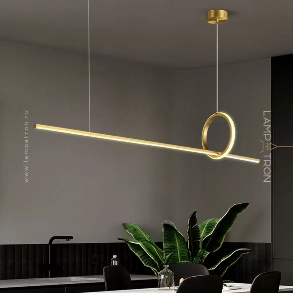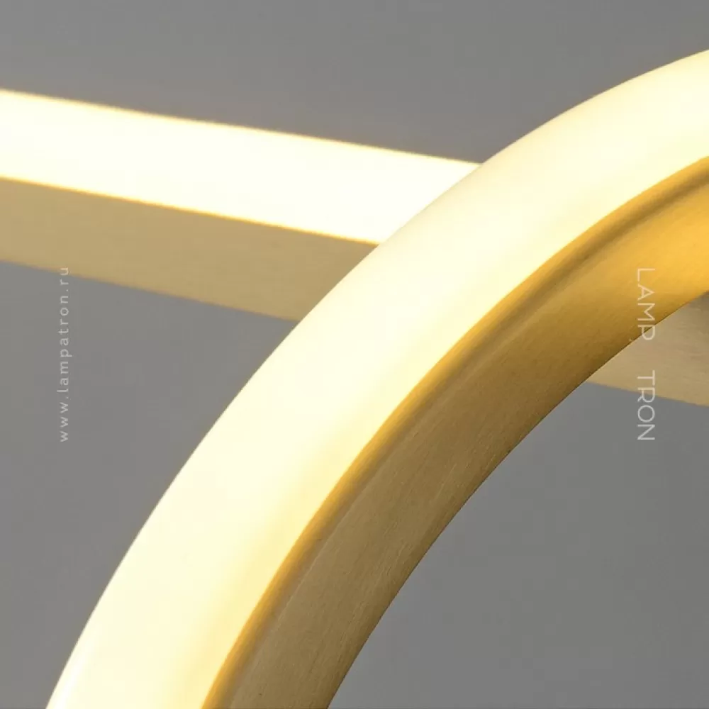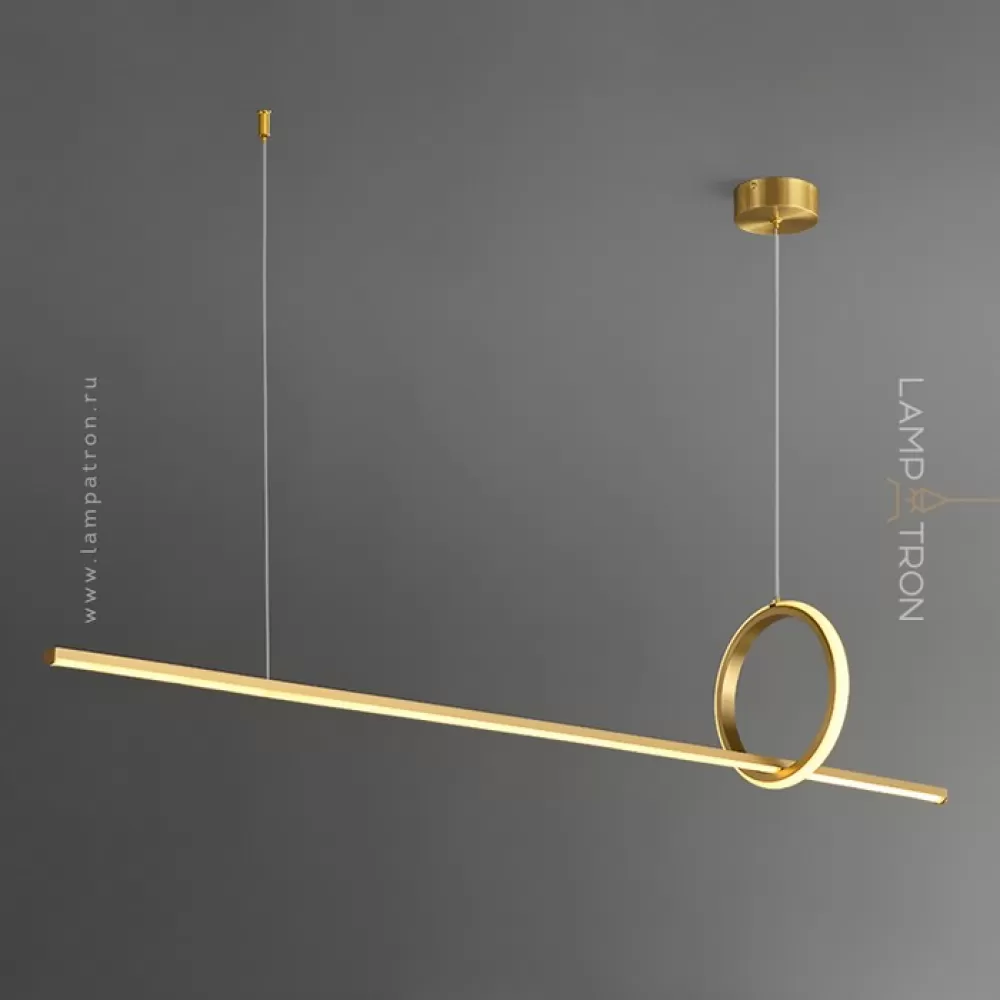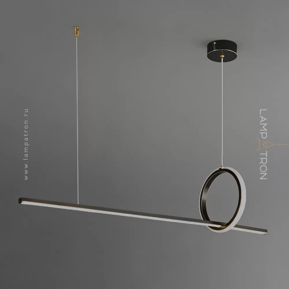 Серия светодиодных светильников в виде комбинации вытянутой светящейся рейки и кольца