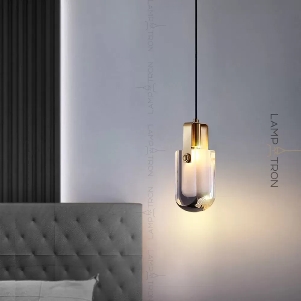 Дизайнерский подвесной светильник с белым плафоном в скругленном хрустальном слитке