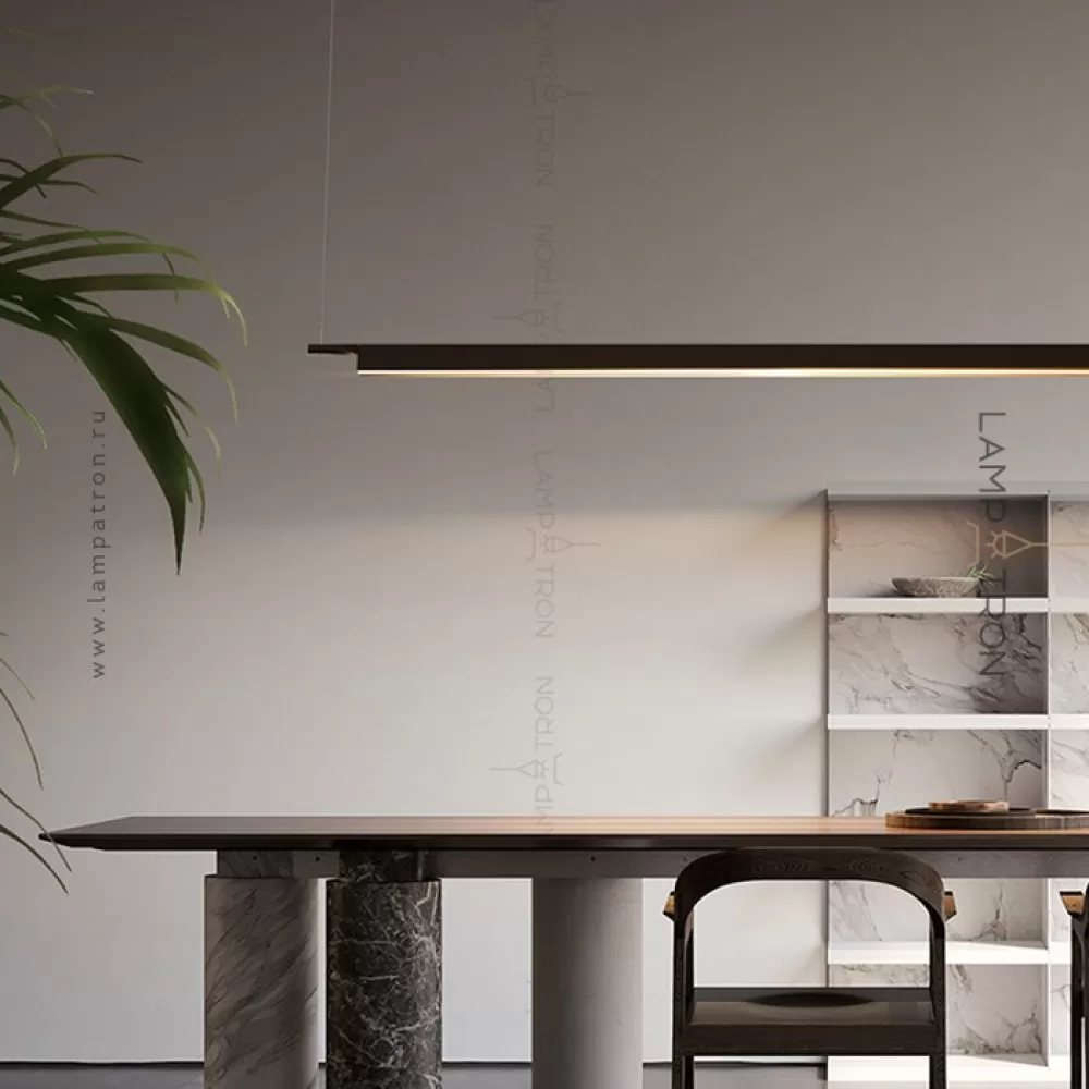 Светодиодный подвесной светильник в виде металлического уголка с матовой текстурой на стержне