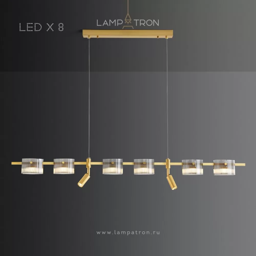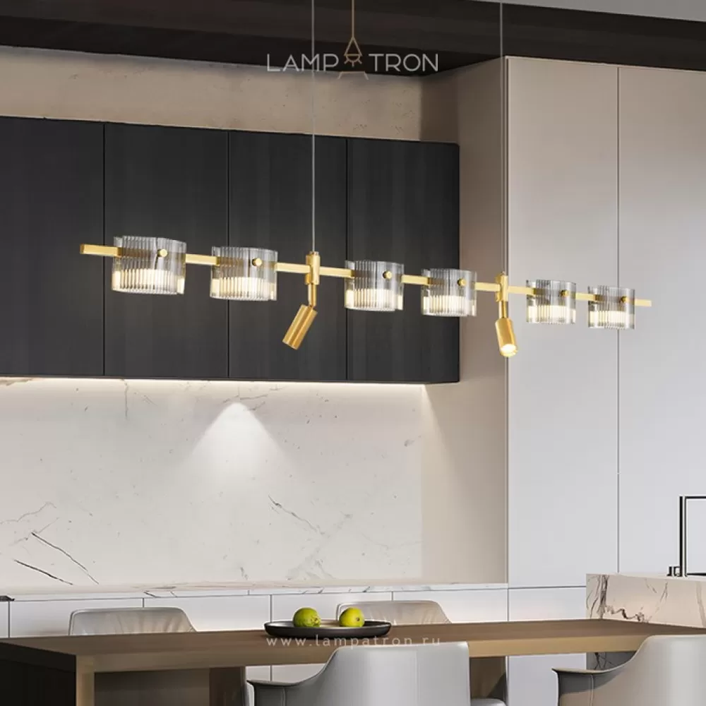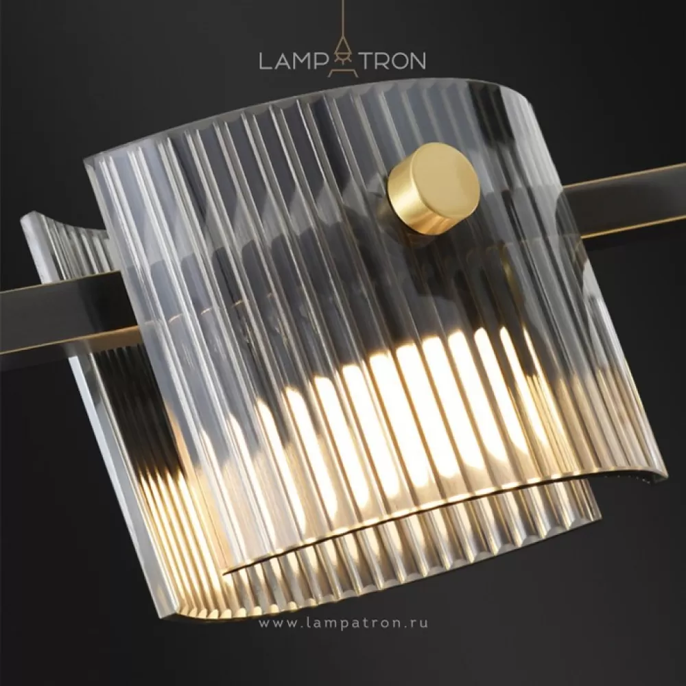 NICOLETTA-C-LONG01. Реечный светильник. Материал: латунь/стекло; цвет корпуса: черный+латунь; размеры (ширина × высота): 100 × 118 см; (ширина) потолочное крепление: 52 см; длина подвеса: 100 см; тип источника: led-матрица; цветовая температура: трехцветный свет; мощность: 22w; количество источников: 6