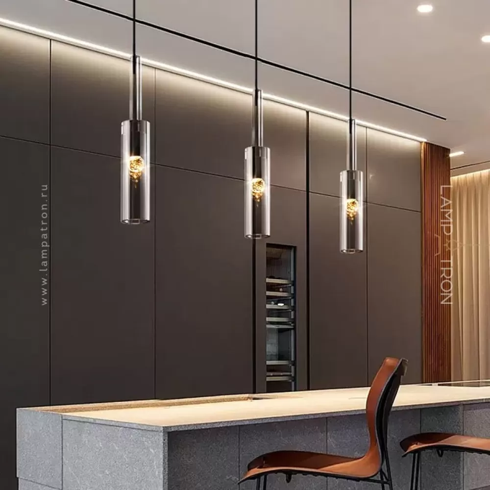 Подвесной светильник с цилиндрическим плафоном из стекла