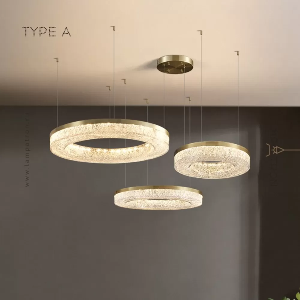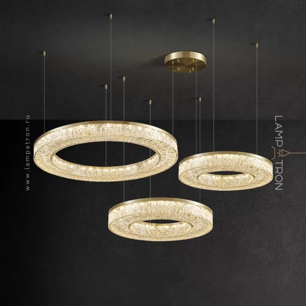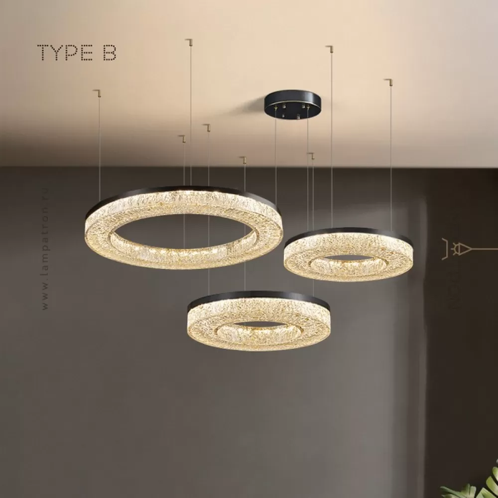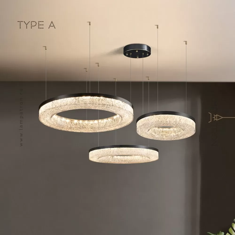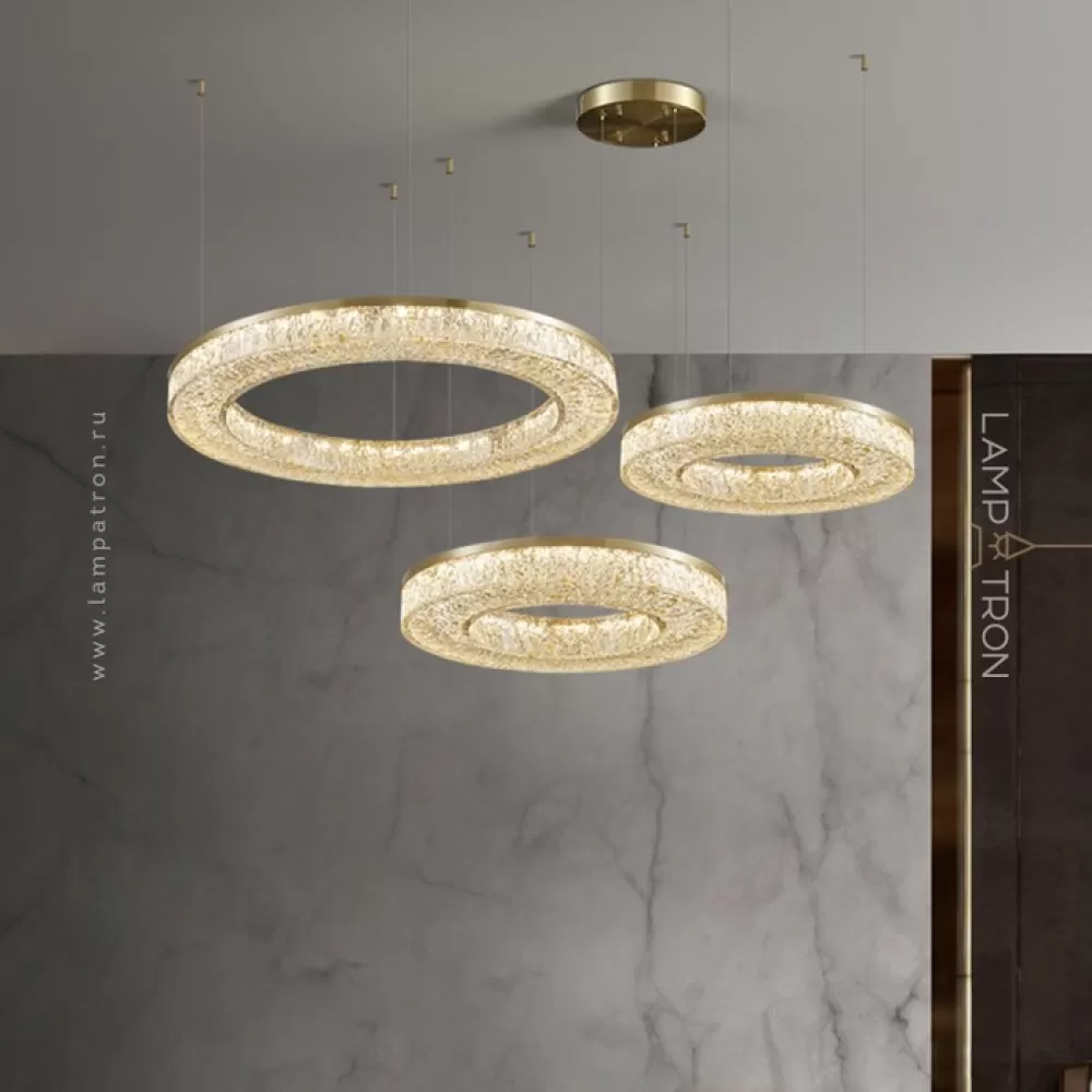 Серия светодиодных люстр в виде комбинации колец разного диаметра с полупрозрачным рассеивателем с эффектом льда