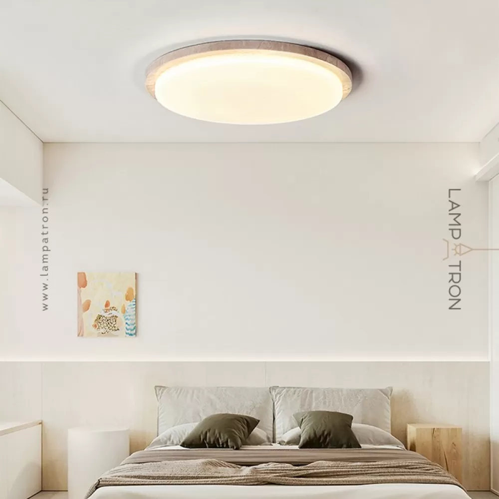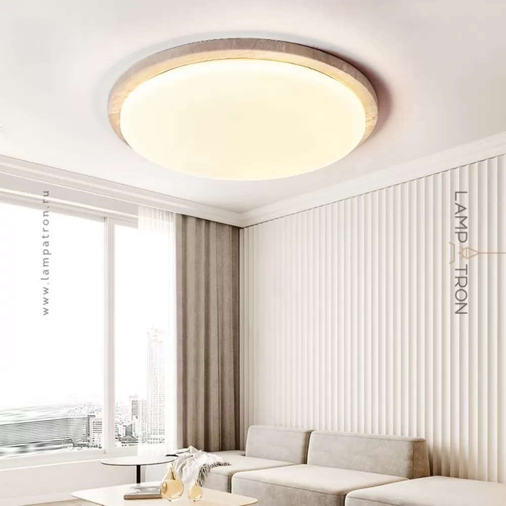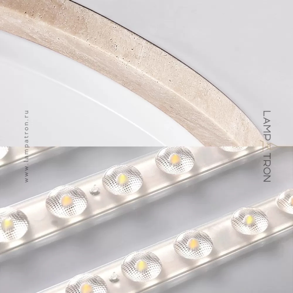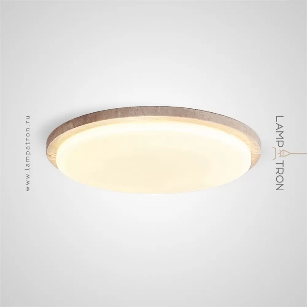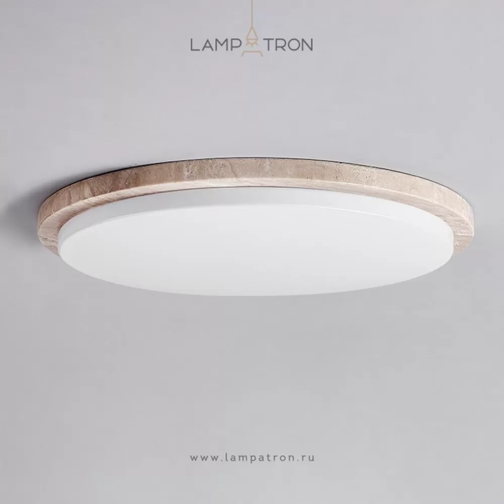 Серия потолочных светодиодных светильников с дисковидным корпусом из желтого камня травертина