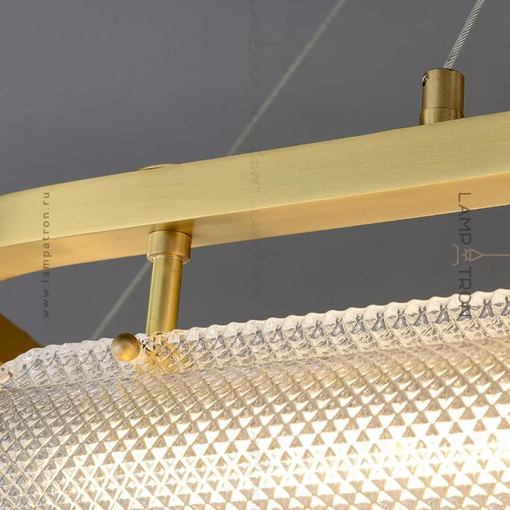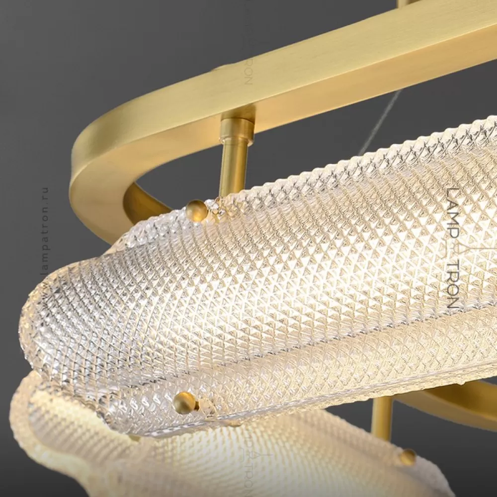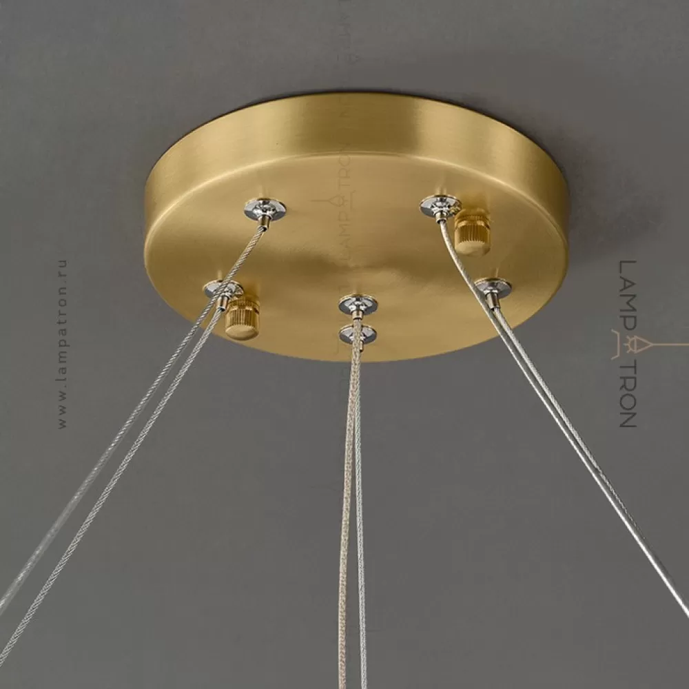 PENELOPE01. Люстра. Материал: металл/стекло; цвет корпуса: латунь; размеры (диаметр × высота): Ø 96 × 17 см; потолочное крепление: Ø 15 см; длина подвеса: 150 см; тип источника: LED матрица; цветовая температура: теплый свет; мощность: 45W; количество источников: 6