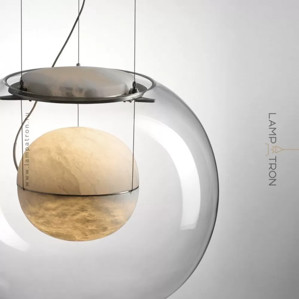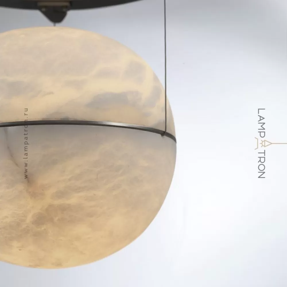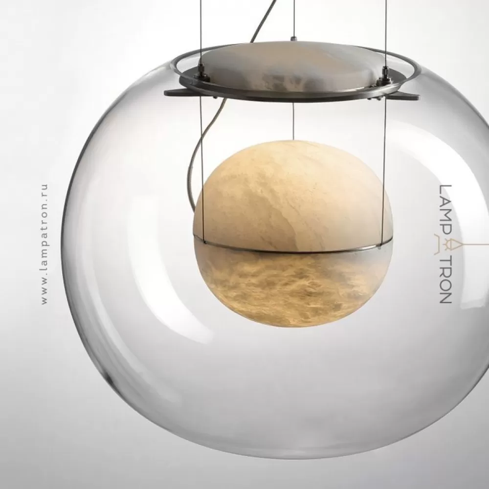 Светильник на струнном подвесе с комбинированноым корпусом из мраморного рассеевателя внутри стеклянной сферы