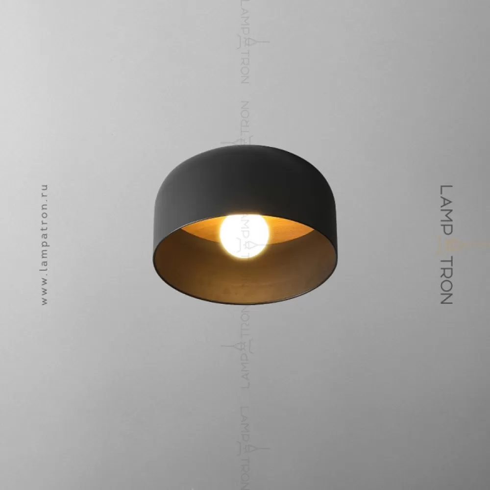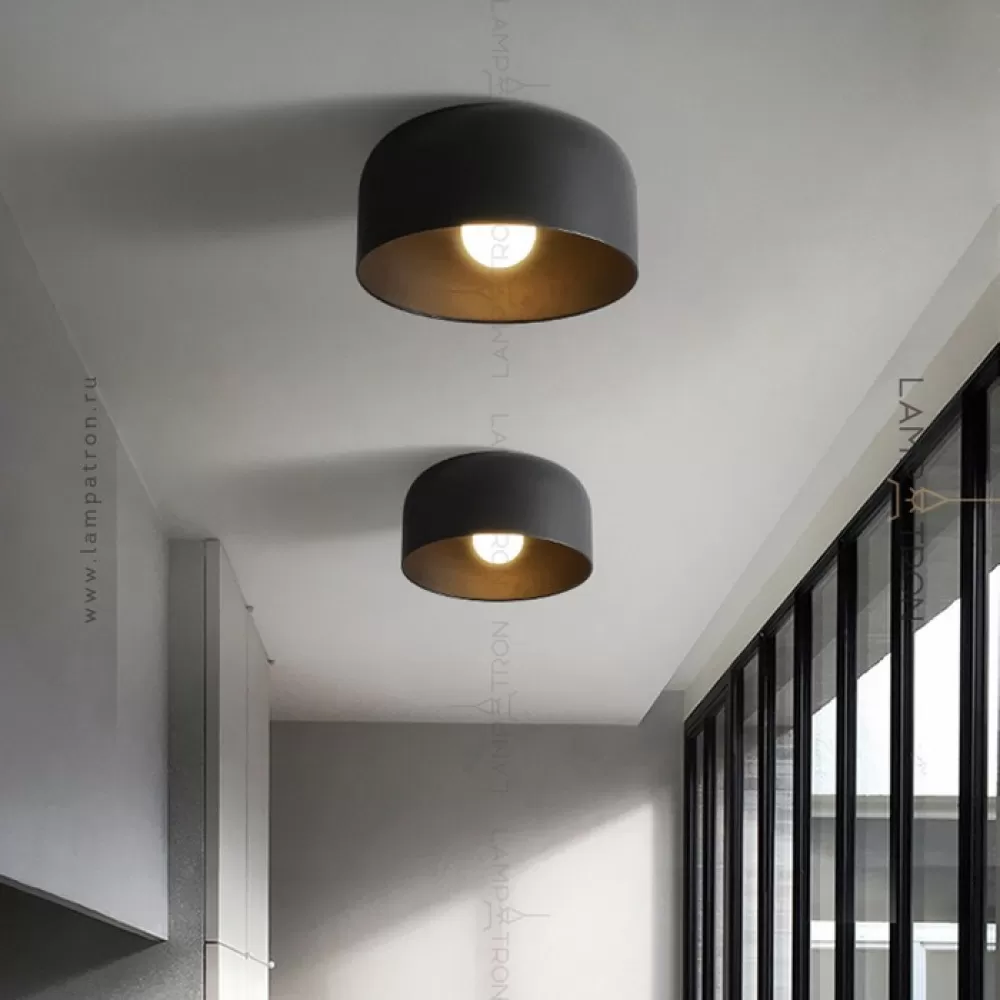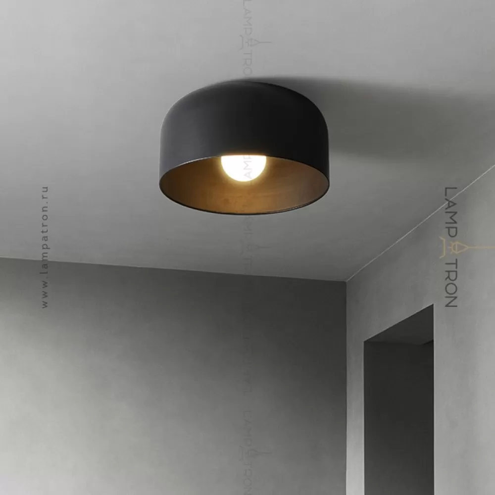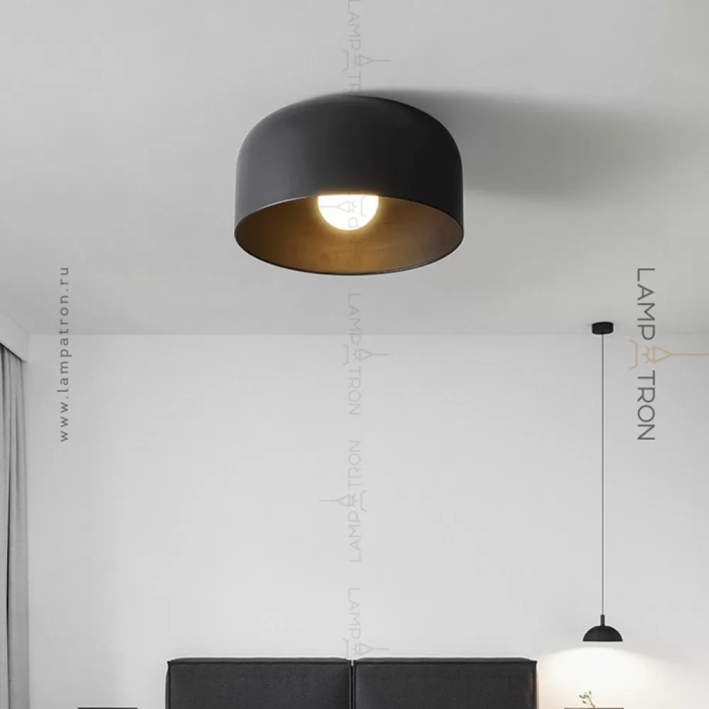 Серия потолочных светильников с матовыми купольными плафонами с отделкой под дерево