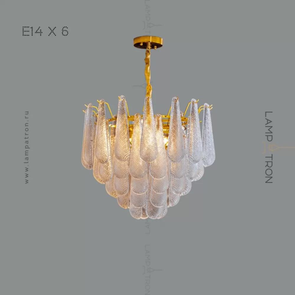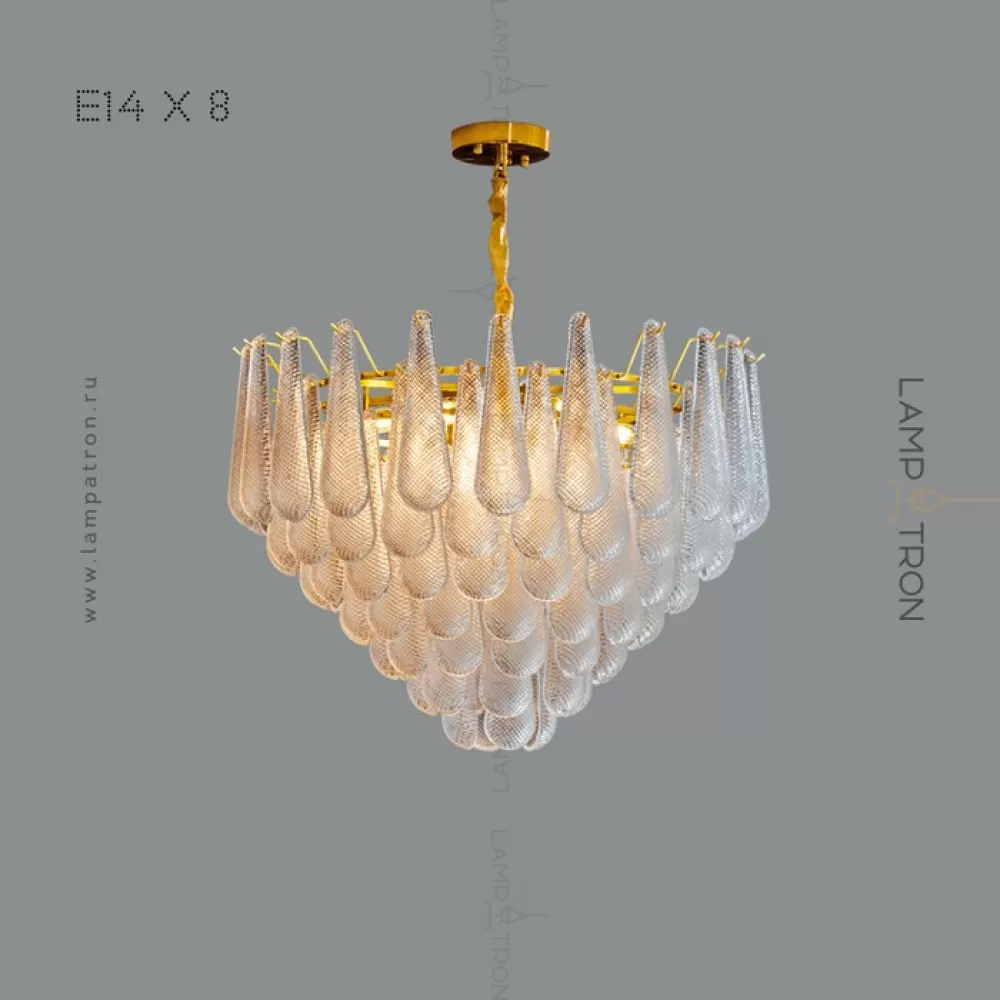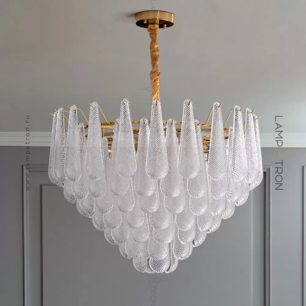 Серия люстр с каскадными абажурами из стеклянных подвесок каплевидной формы