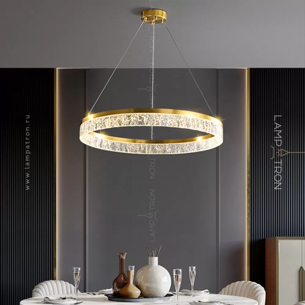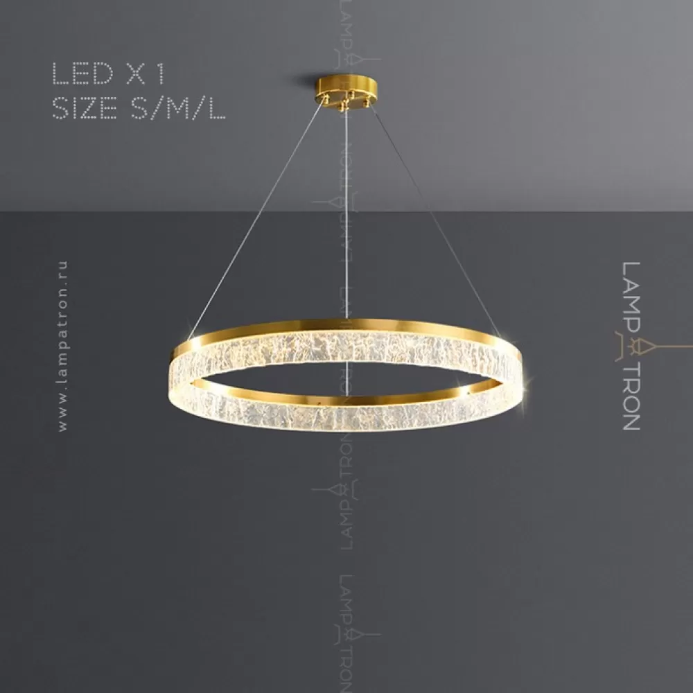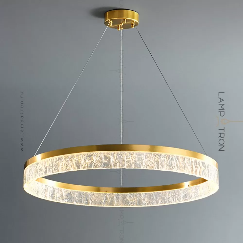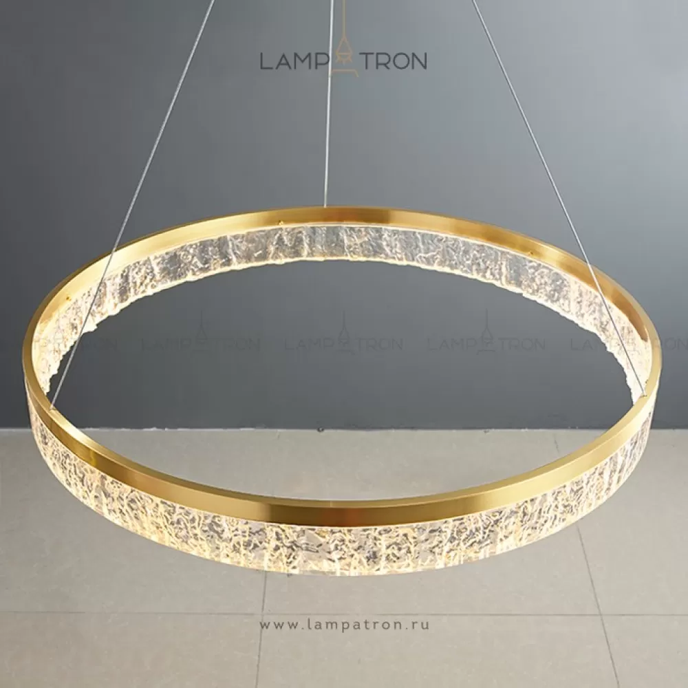 Серия дизайнерских люстр с рельефным прозрачным плафоном с эффектом льда на кольцевом каркасе с LED-подсветкой