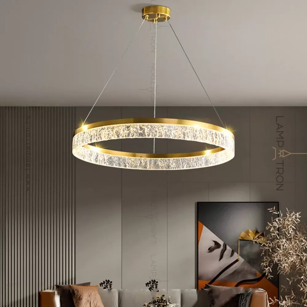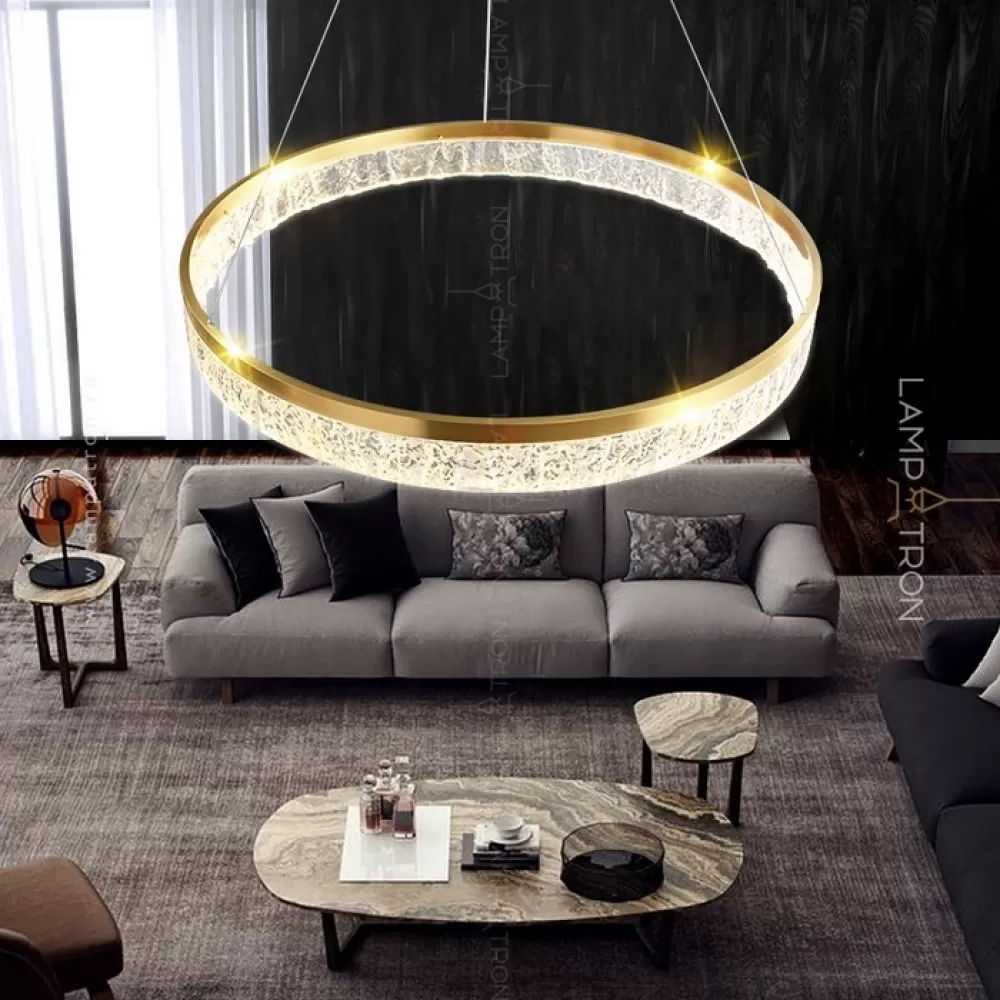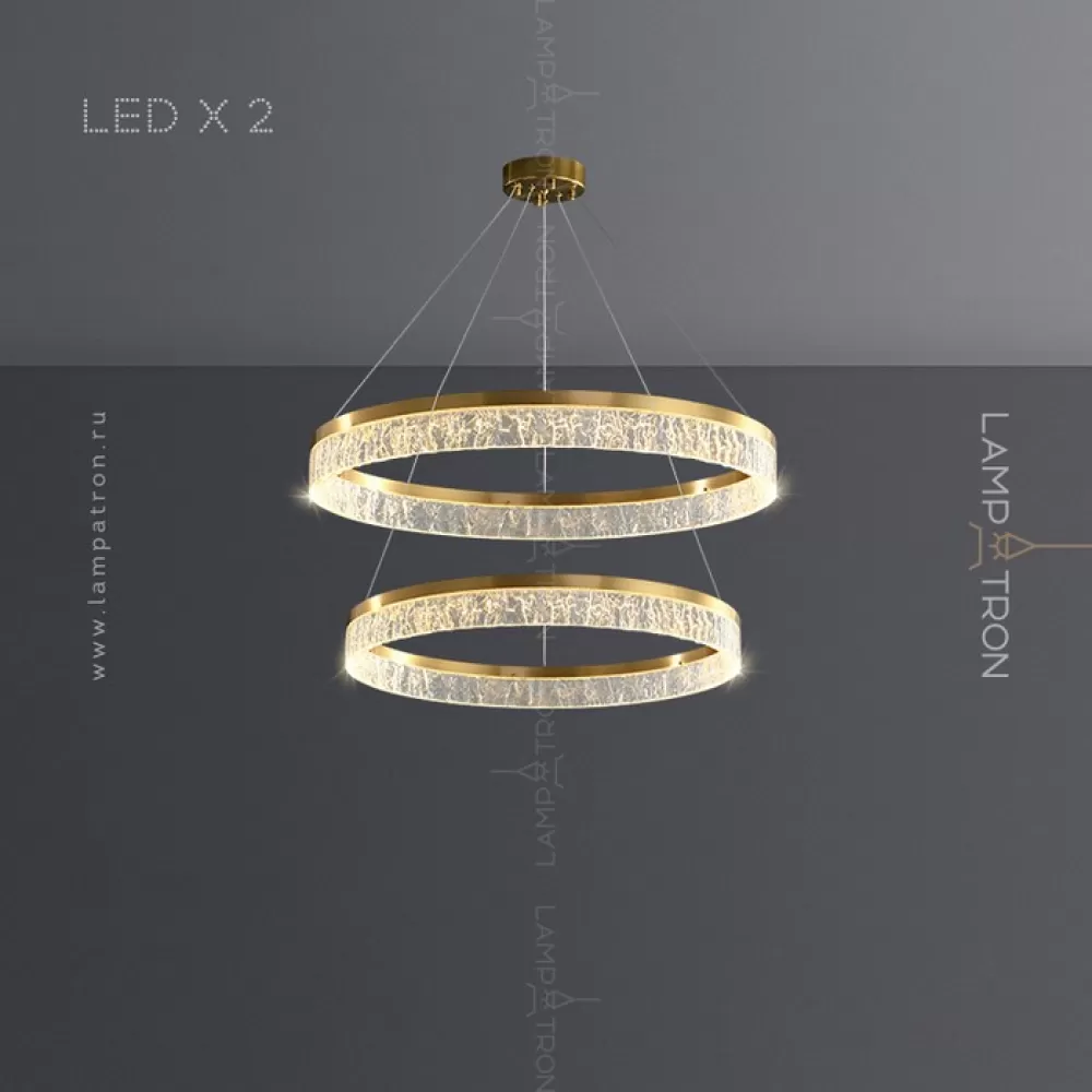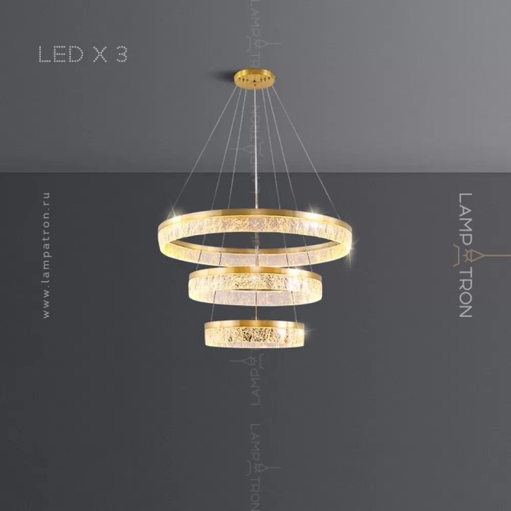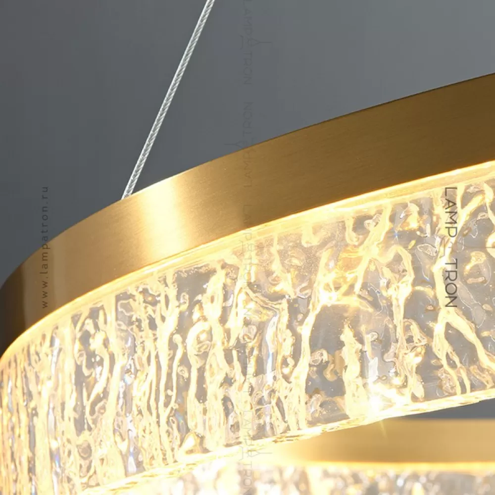 Серия дизайнерских люстр с рельефным прозрачным плафоном с эффектом льда на кольцевом каркасе с LED-подсветкой