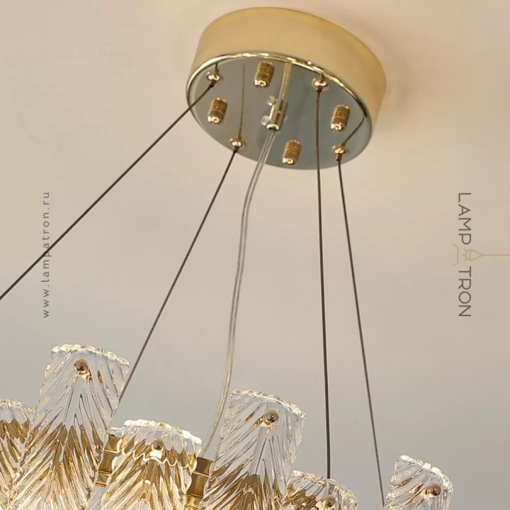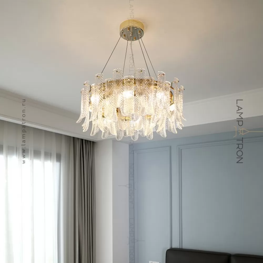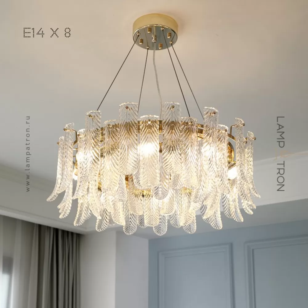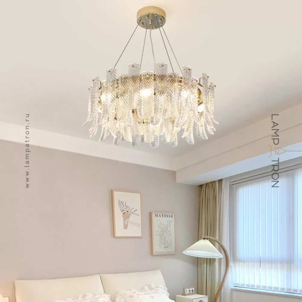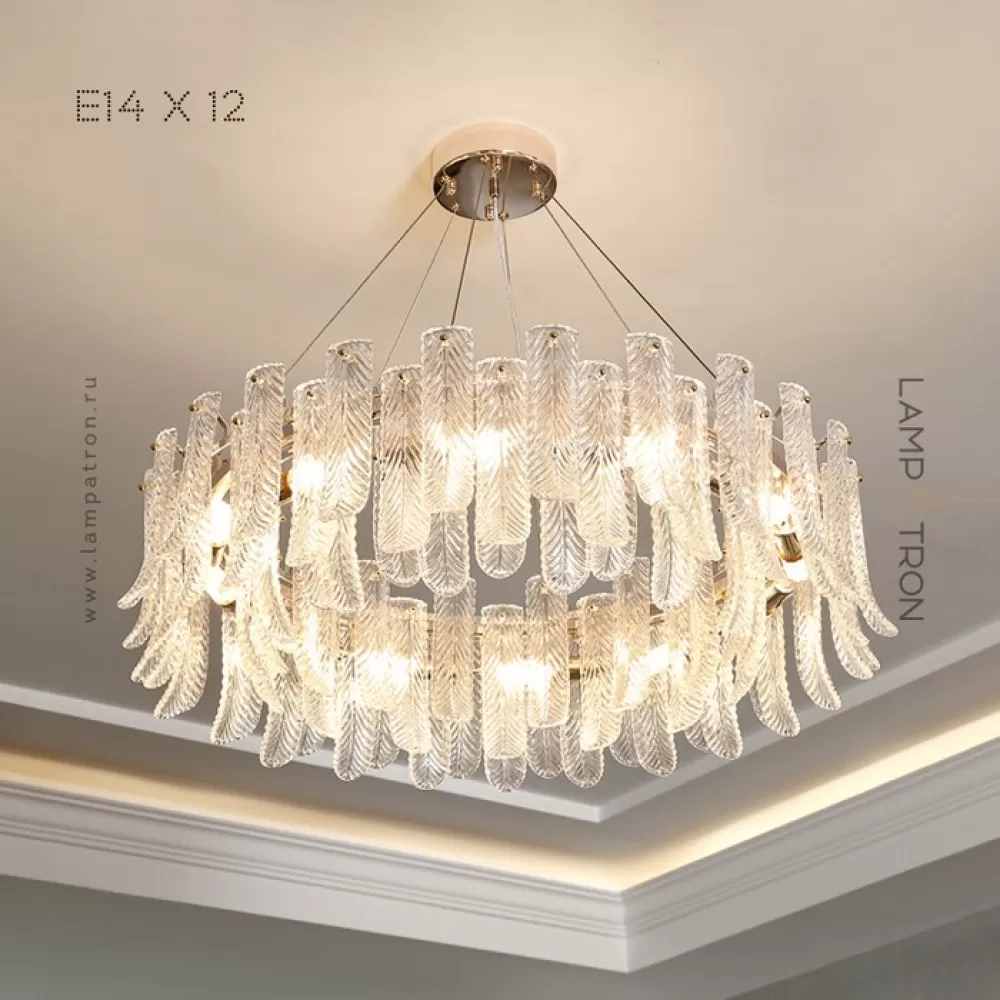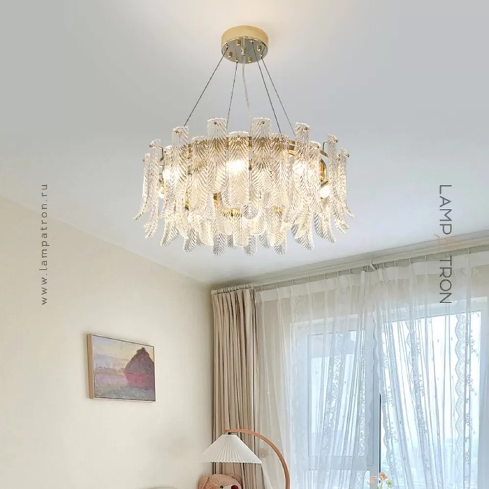 Серия кольцевых люстр с прозрачными рассеивателями в форме перьев из рельефного стекла