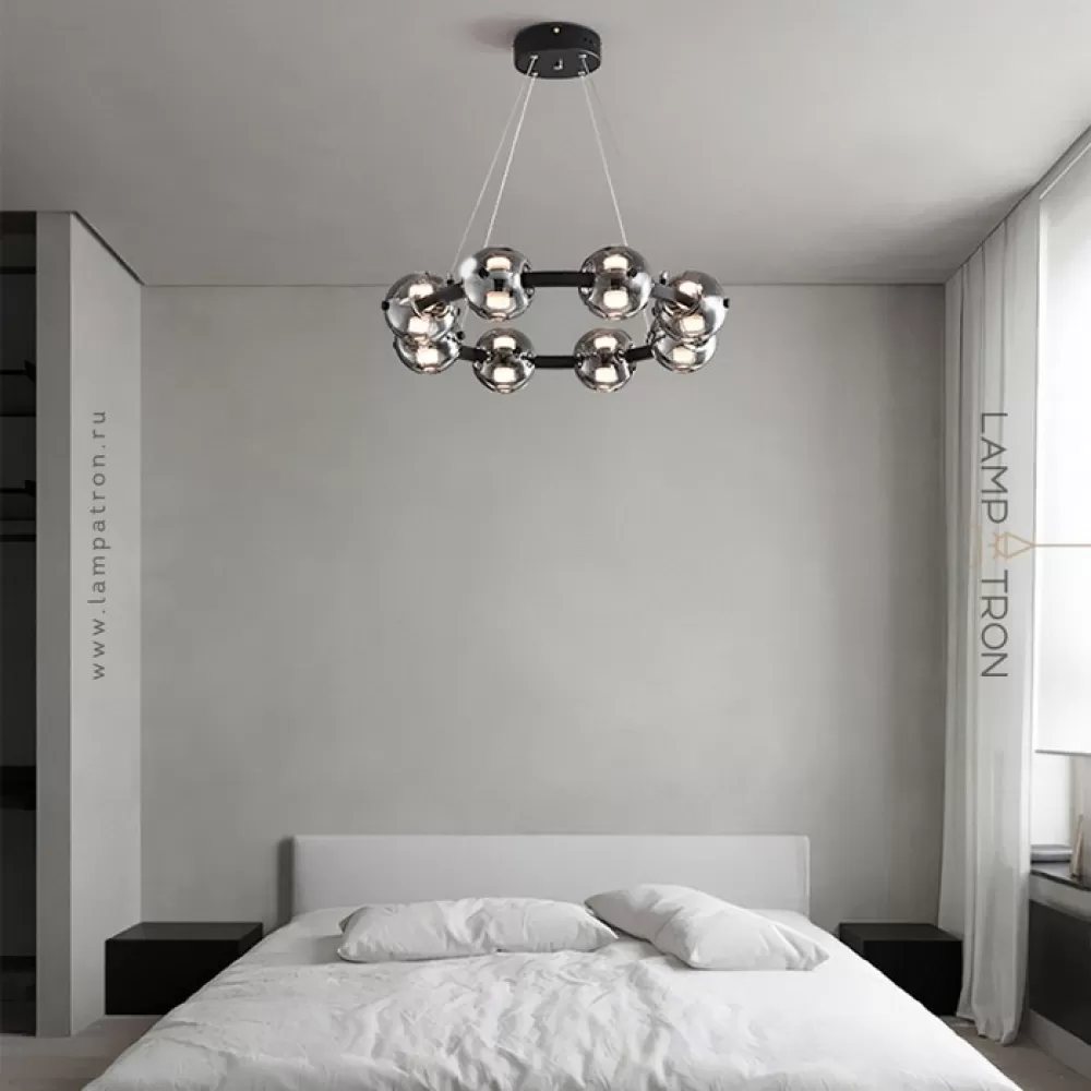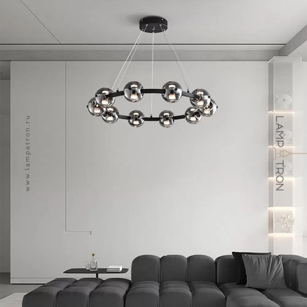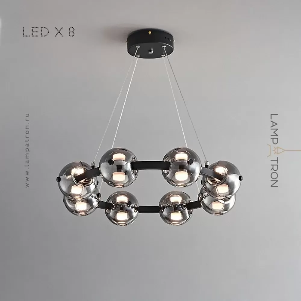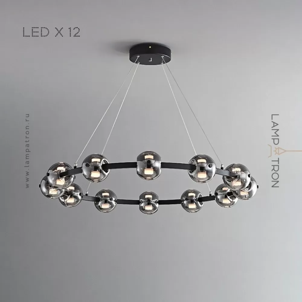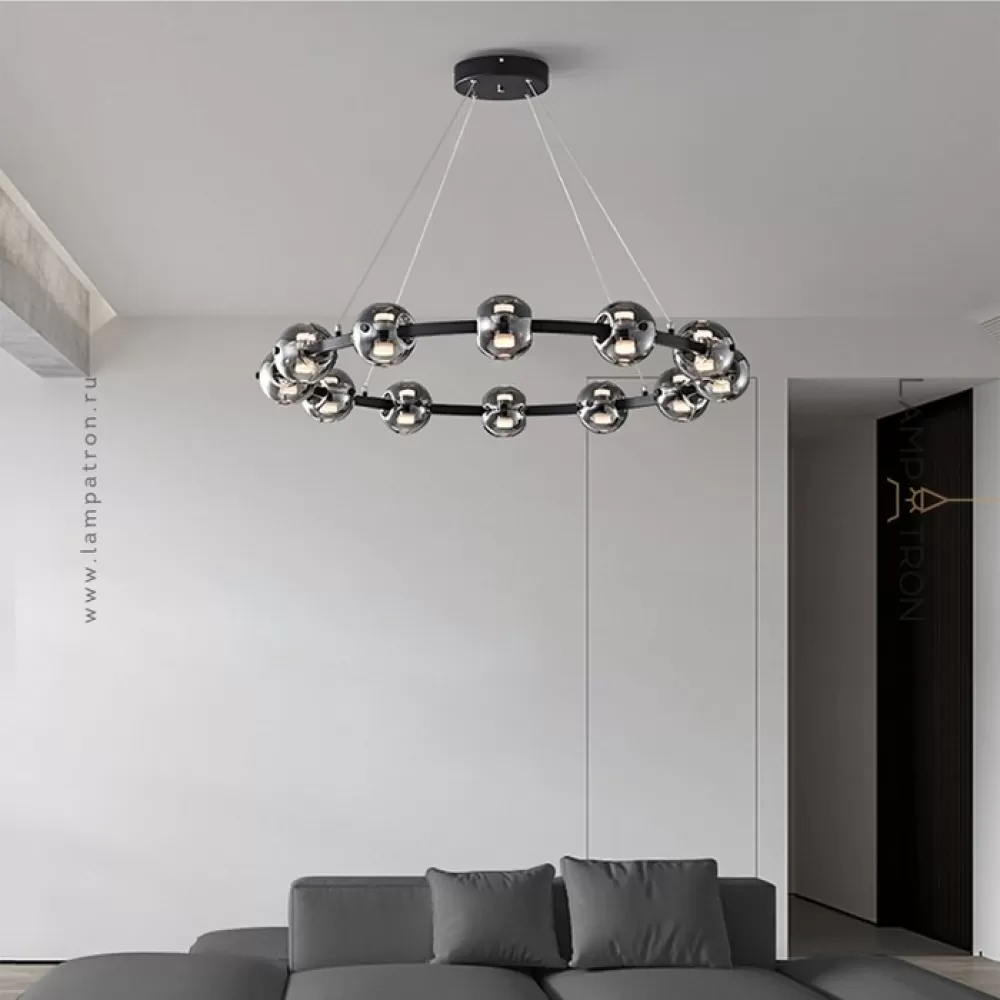 Серия кольцевых светодиодных люстр с точечными источниками в шарообразных рассеивателях из дымчатого стекла