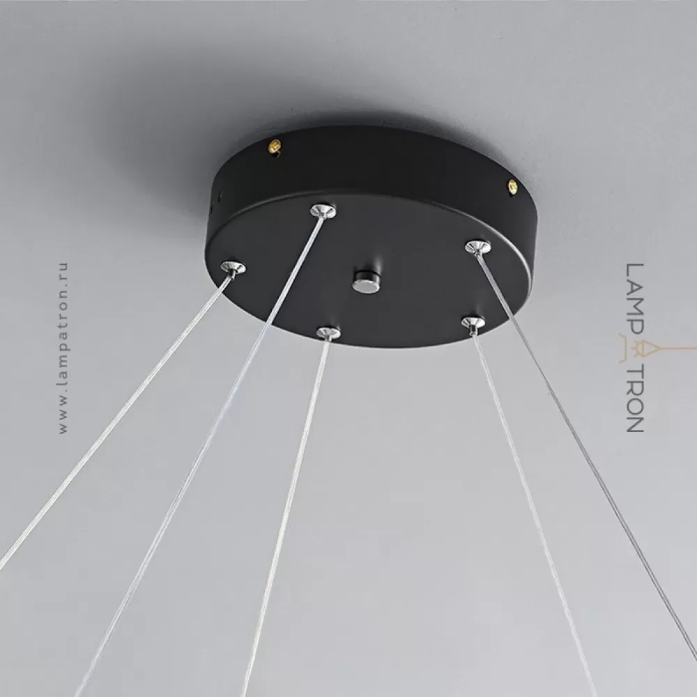 SEMUND-B01. Люстра. Материал: металл/стекло; цвет корпуса: черный; размеры (диаметр × высота): Ø 80 × 12 см; потолочное крепление: Ø 18 × 4 см; длина подвеса: 200 см; тип источника: led матрица; цветовая температура: трехцветный свет; мощность: 70W; количество источников: 20