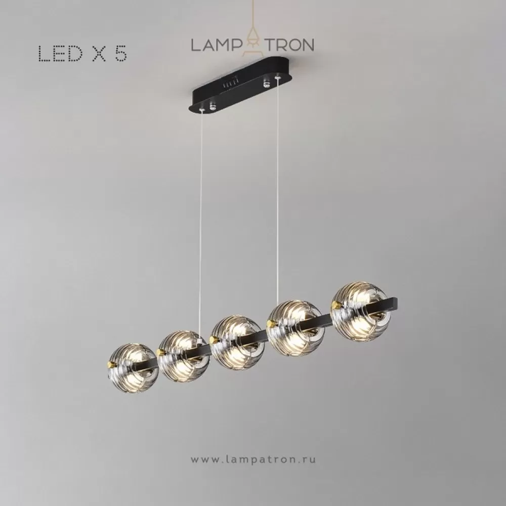 Серия рядных светодиодных светильников с точечными источниками в шарообразных рассеивателях из рельефного стекла