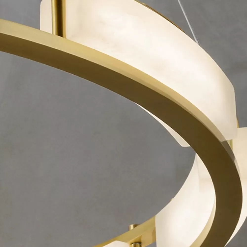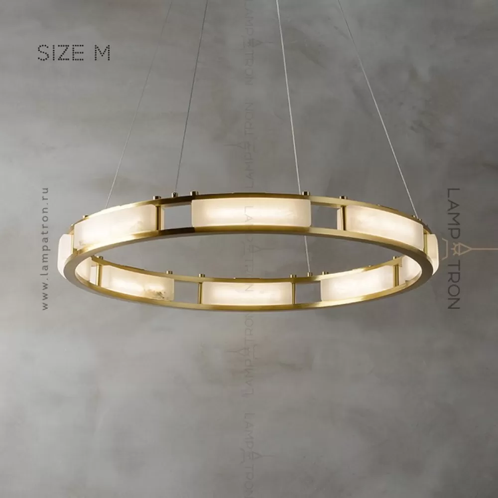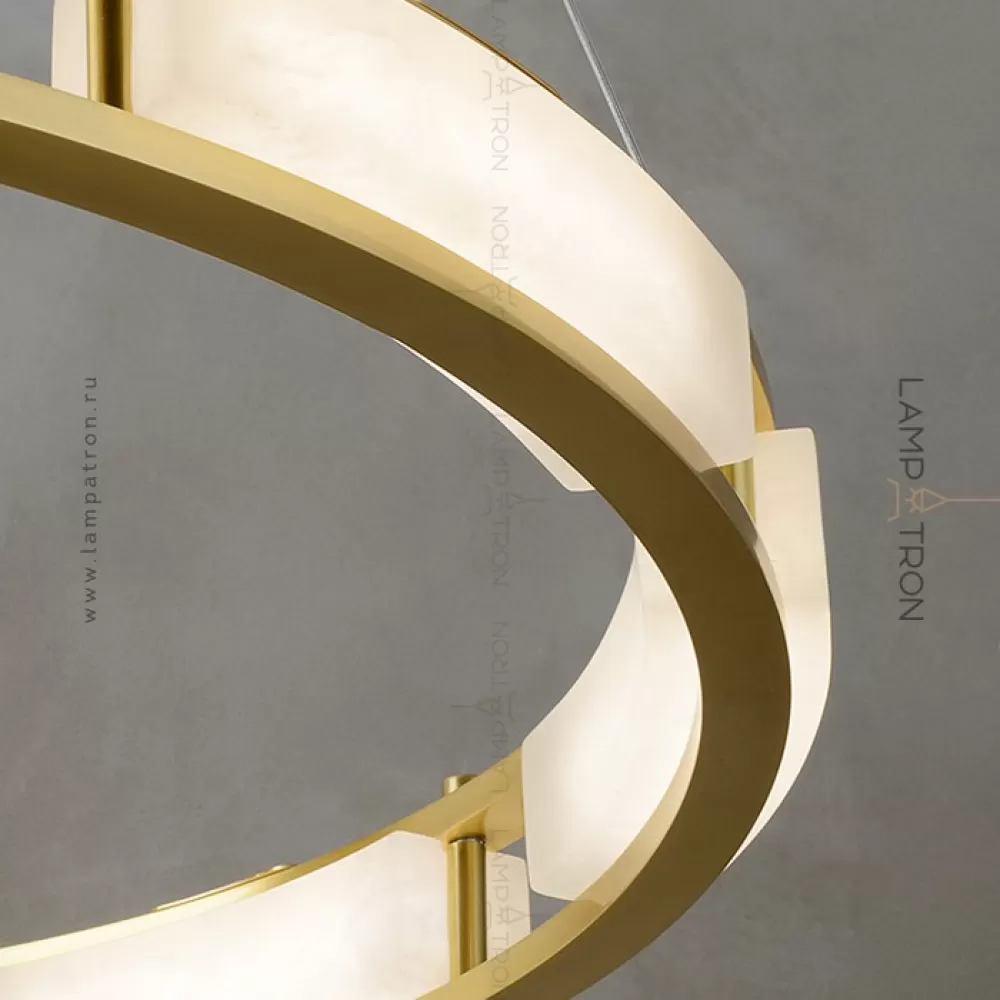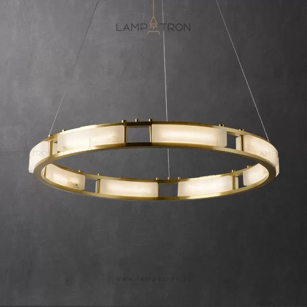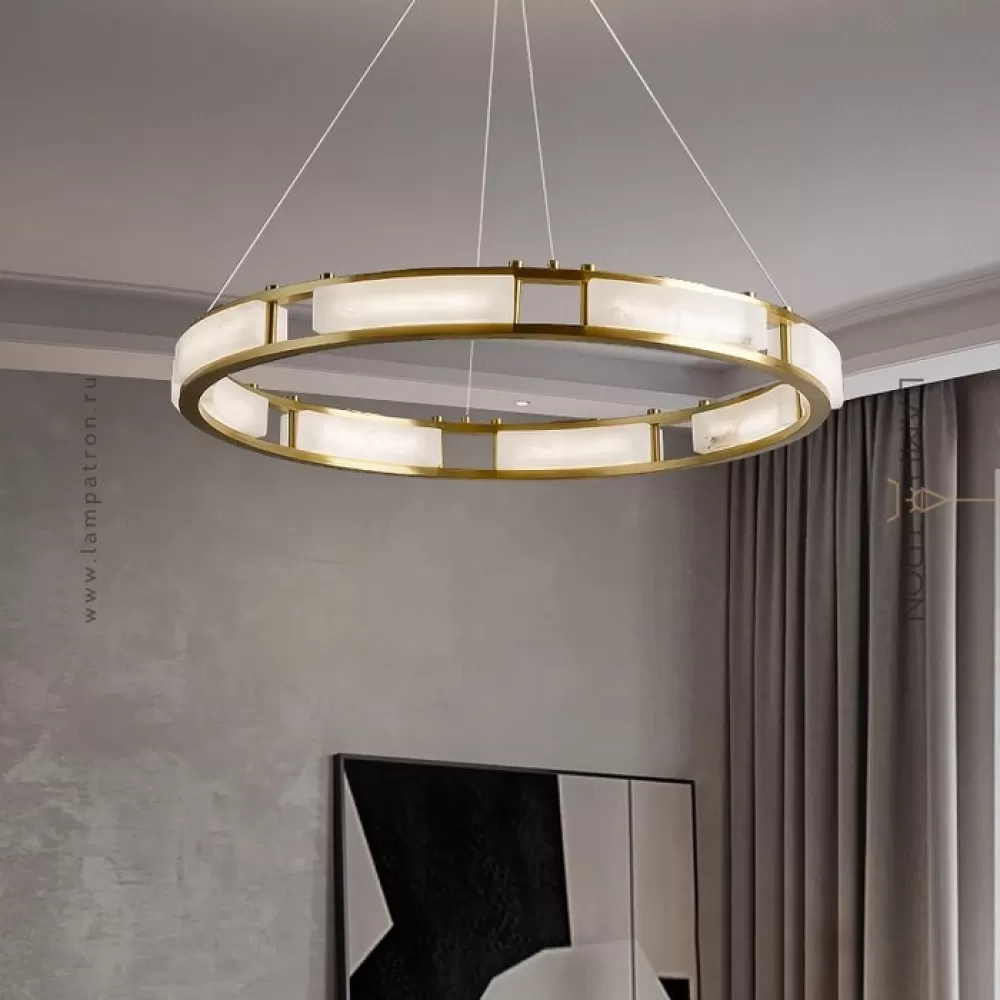 Серия кольцевых светодиодных люстр на струнном подвесе с абажуром из цельных мраморных пластин