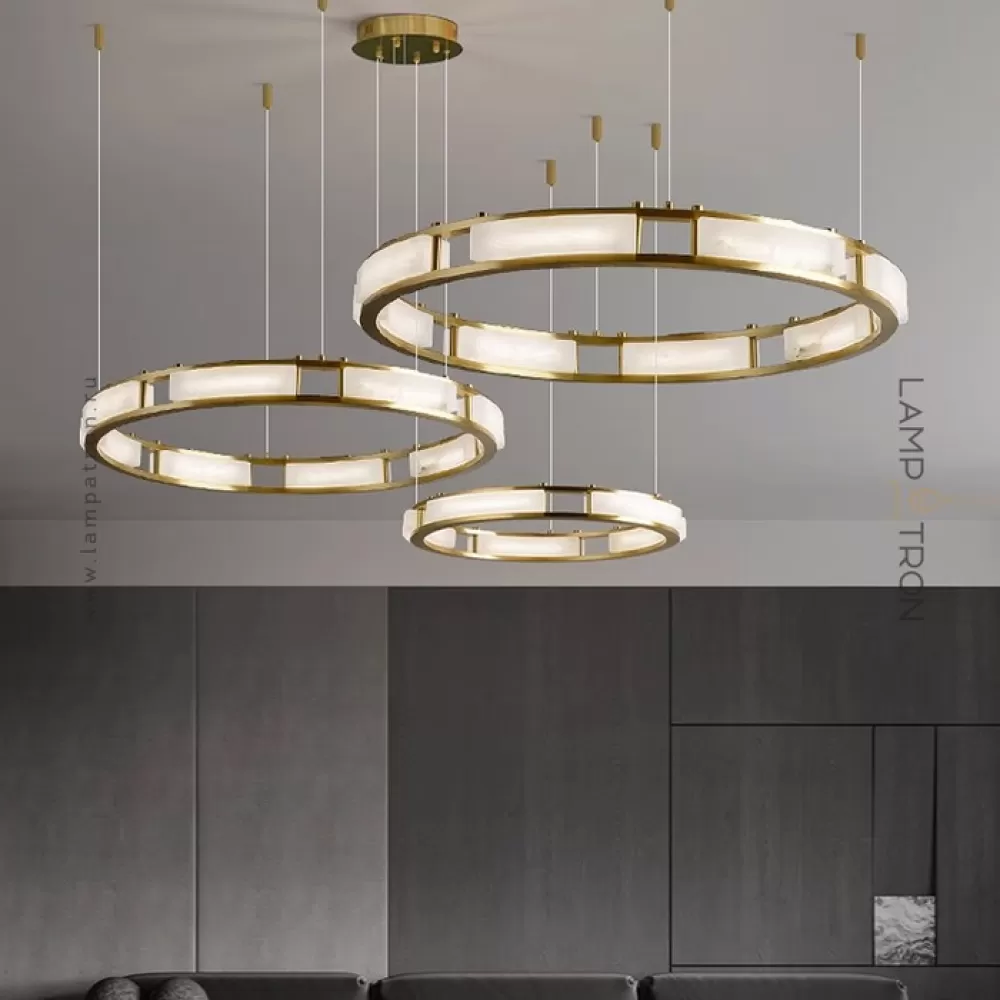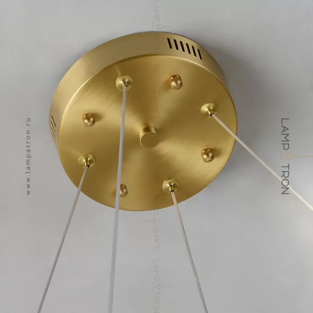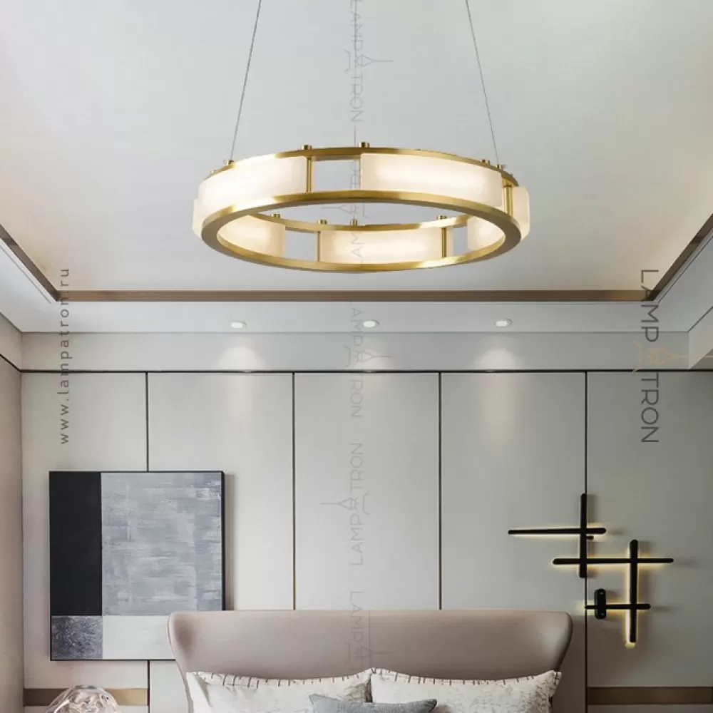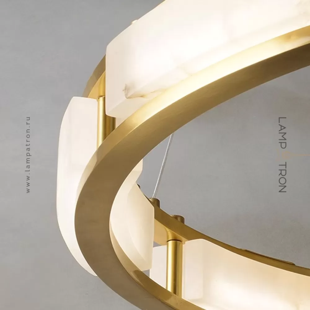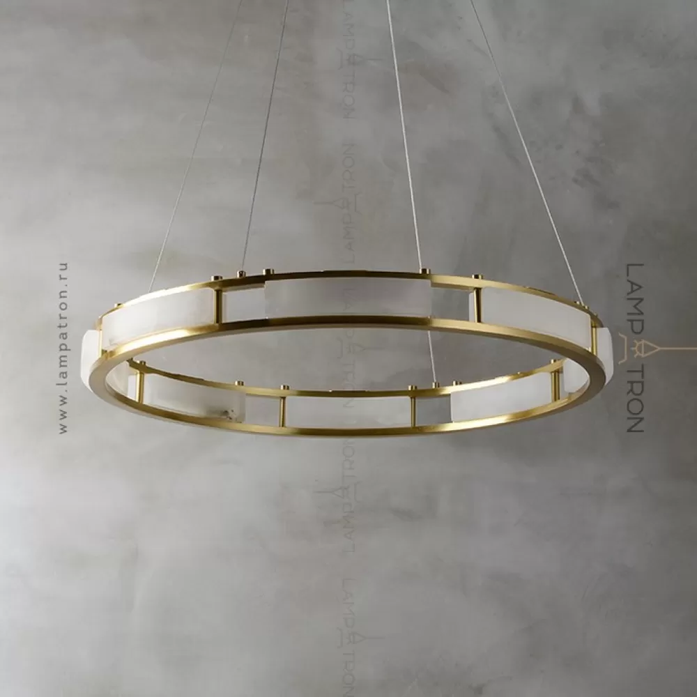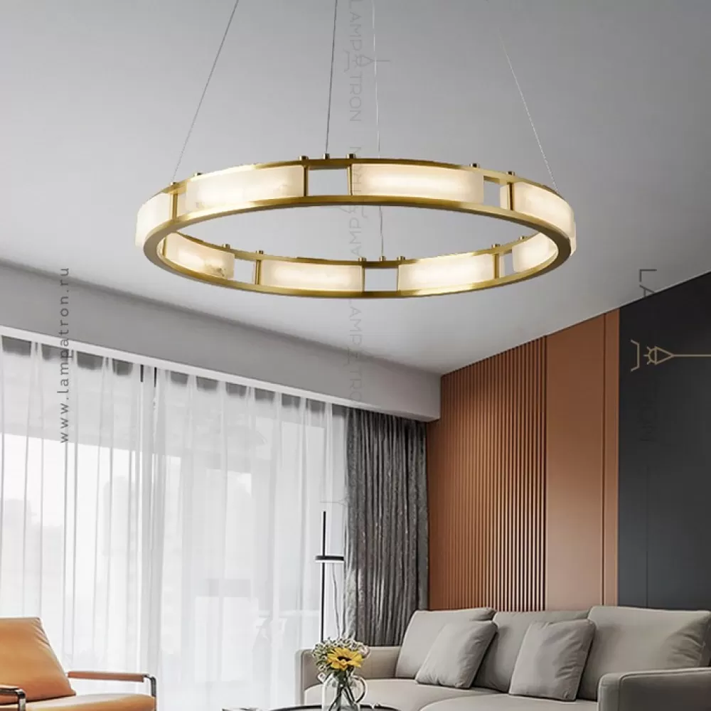 Серия кольцевых светодиодных люстр на струнном подвесе с абажуром из цельных мраморных пластин