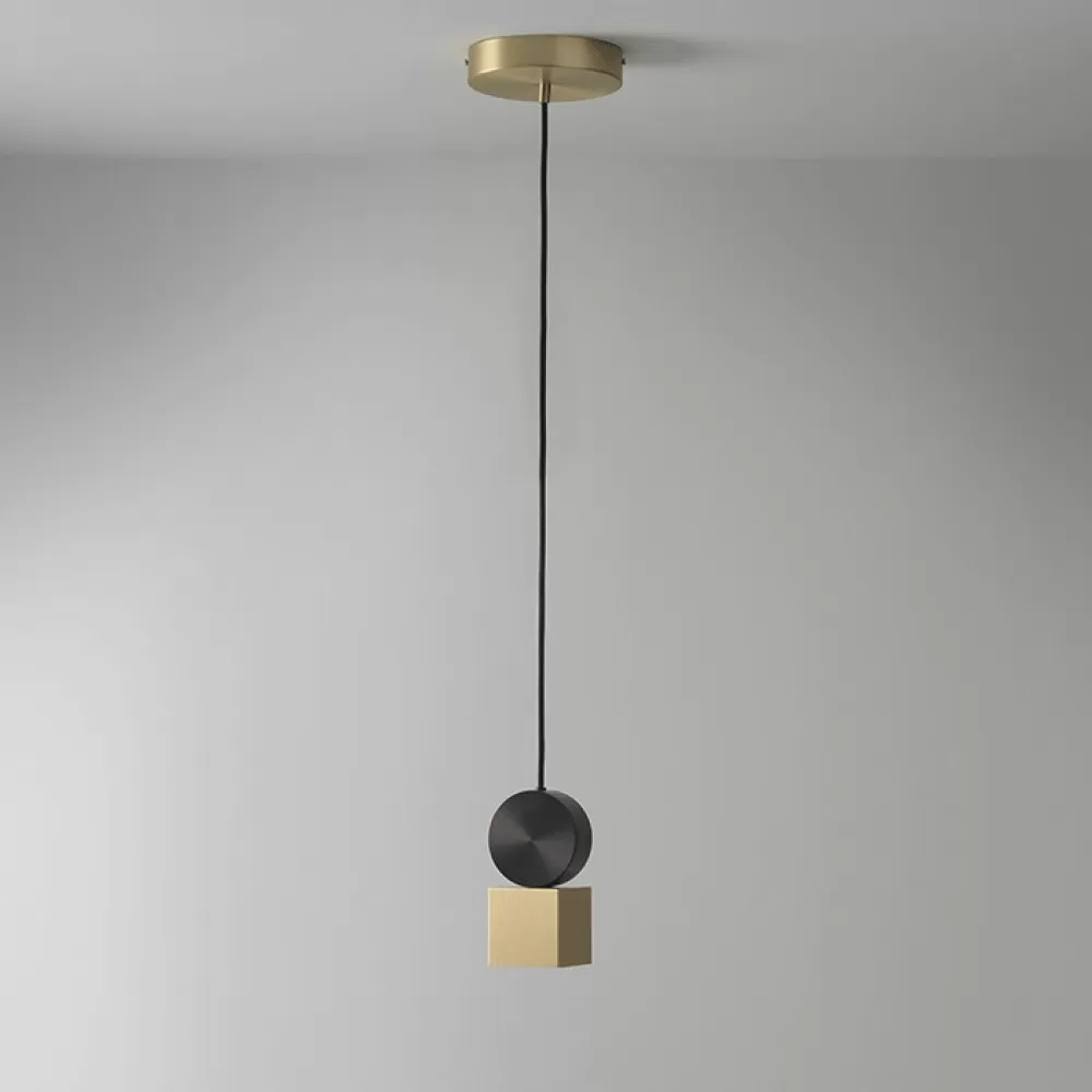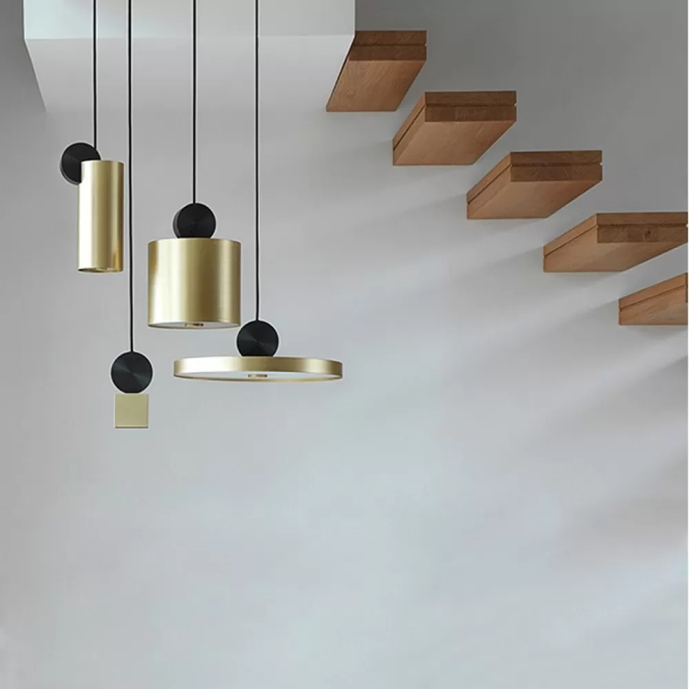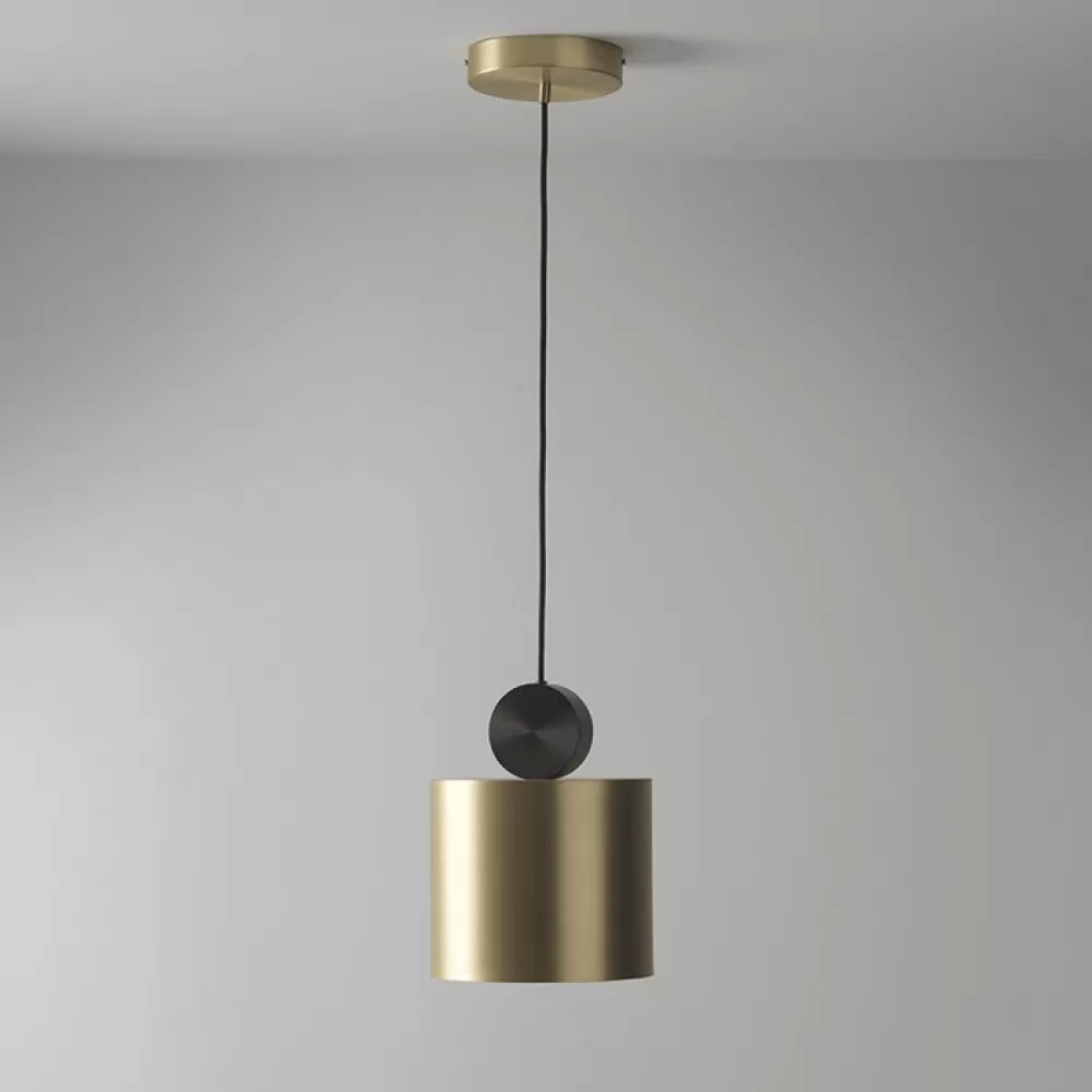 SHEEN01. Подвесной светильник. Материал: металл / акрил; цвет: латунь+черный; размеры (диаметр × высота): Ø 23 см × 28 см; тип источника: LED матрица; количество источников: 1