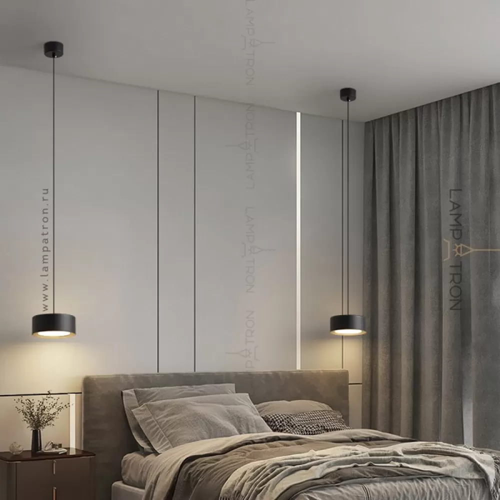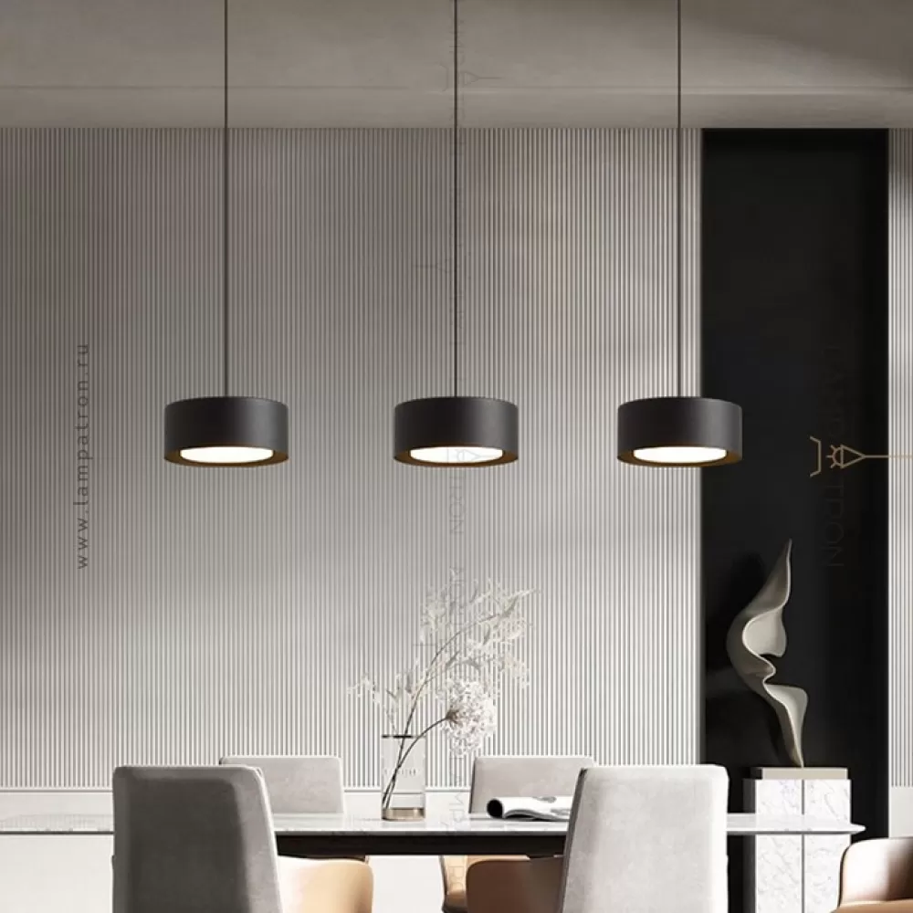 SIGGEN01. Подвес. Материал: металл/акрил; цвет корпуса: черный; размеры (диаметр × высота): Ø 15 × 9 см; потолочное крепление: Ø 8 см; длина подвеса: 160 см; тип источника: LED матрица; цветовая температура: теплый свет; мощность: 6W; количество источников: 1