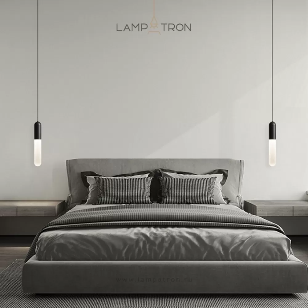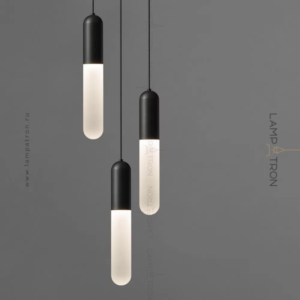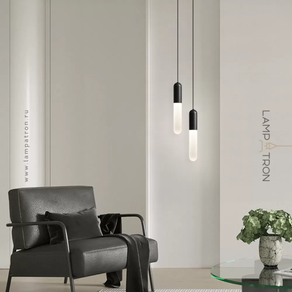 SIGLEIF01. Подвесной светильник. Материал: латунь H65/акрил; цвет корпуса: черный; размеры (диаметр × высота): плафон: Ø 6 × 37 см; длина подвеса: 160 см; тип цоколя: E27; количество источников: 1