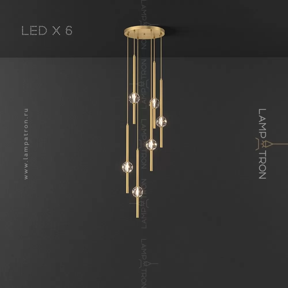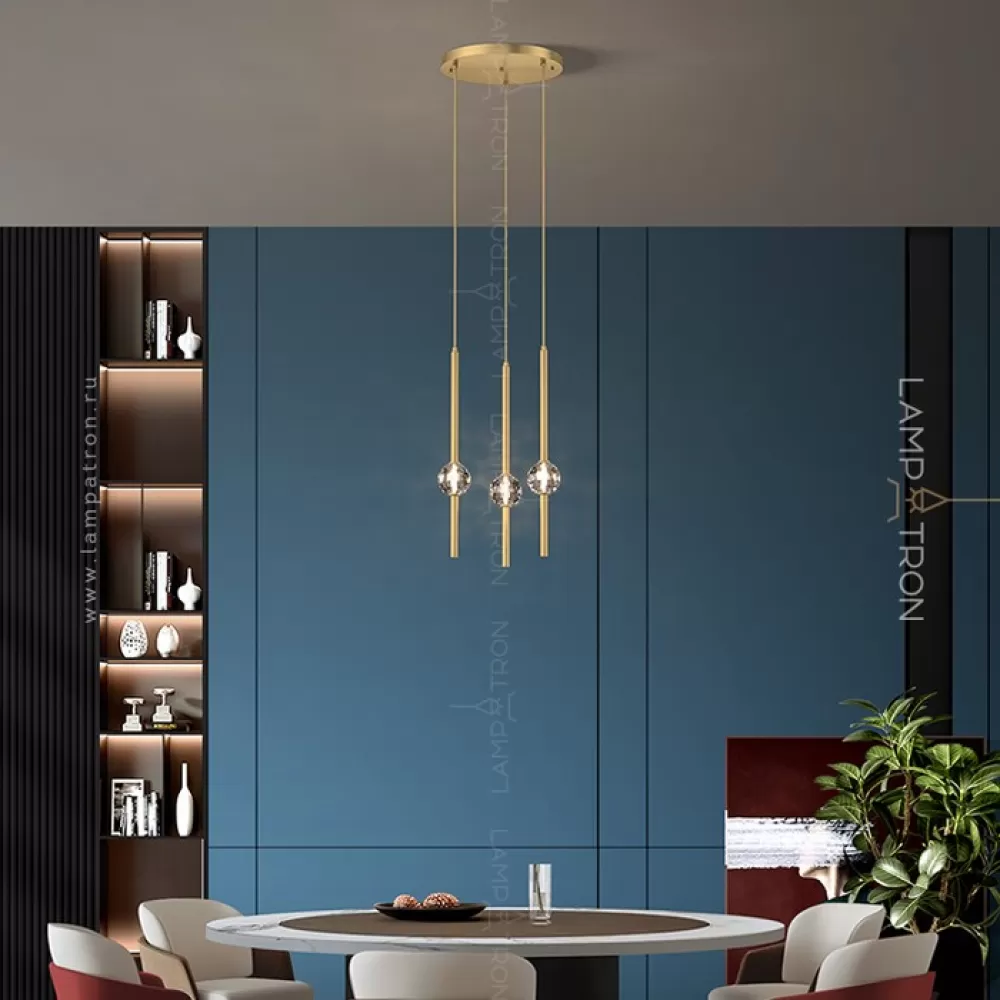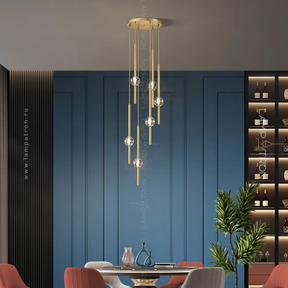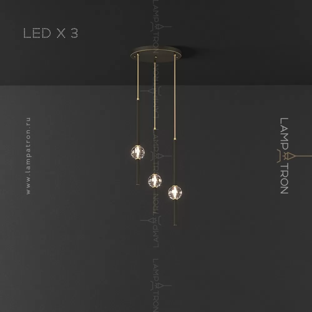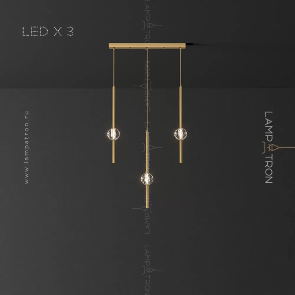 SOCRATES-COMBO01. Подвесной светильник. Материал: латунь H65/хрусталь; цвет корпуса: латунь; размеры (диаметр × высота): Ø 8 × 50 см; длина подвеса: 150 см; тип источника: LED матрица; цветовая температура: трехцветный свет; количество источников: 2
