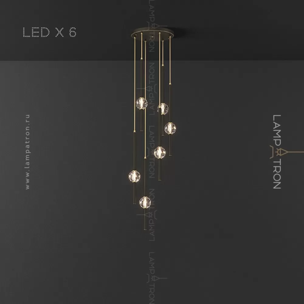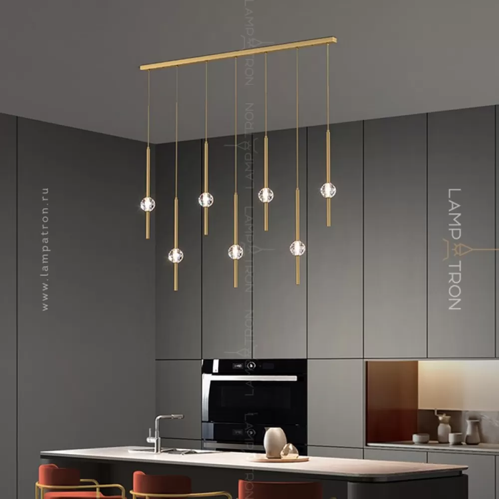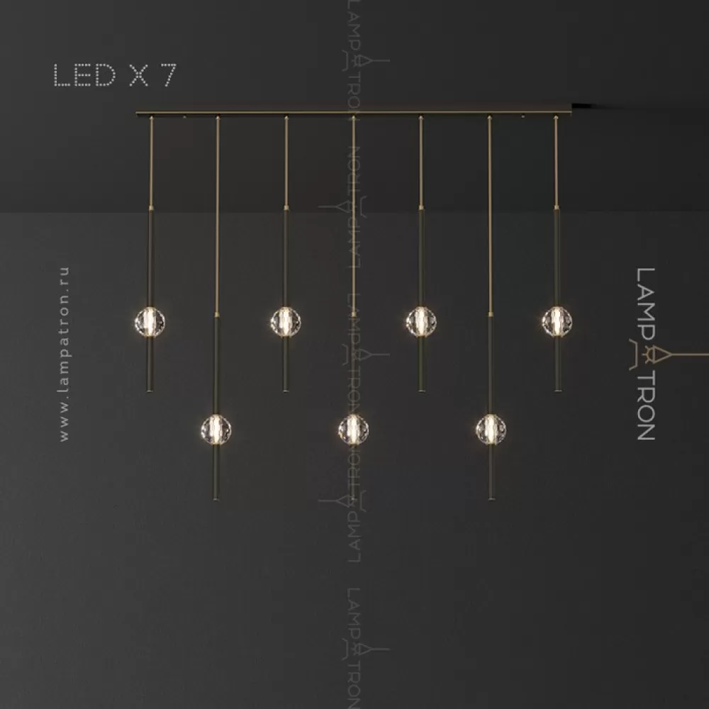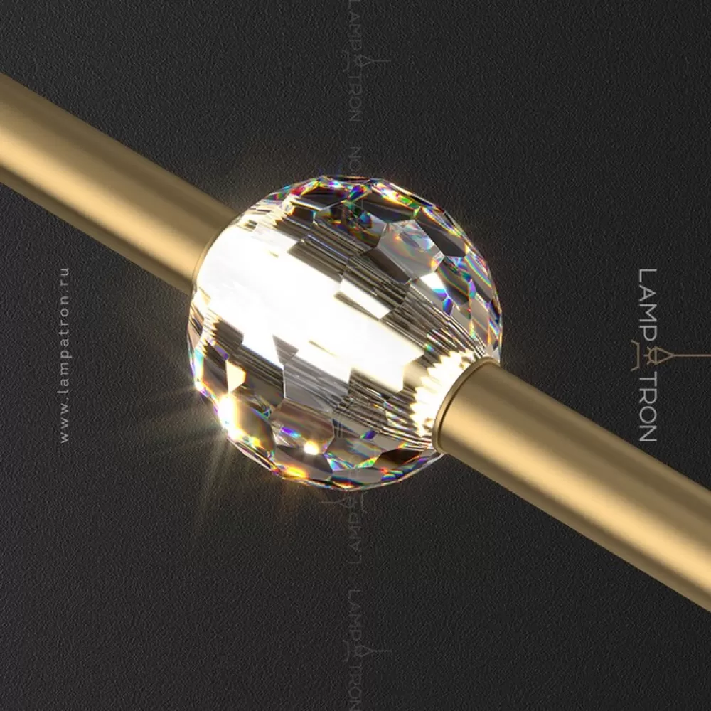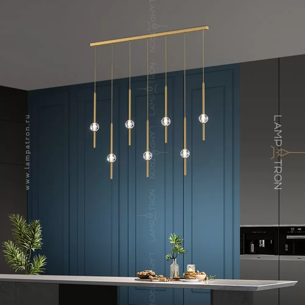 SOCRATES-COMBO01. Подвесной светильник. Материал: латунь H65/хрусталь; цвет корпуса: латунь; размеры (диаметр × высота): Ø 8 × 50 см; длина подвеса: 150 см; тип источника: LED матрица; цветовая температура: трехцветный свет; количество источников: 2