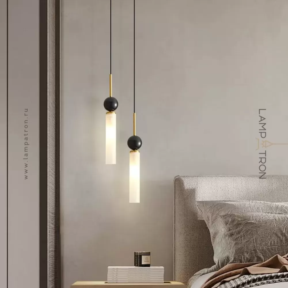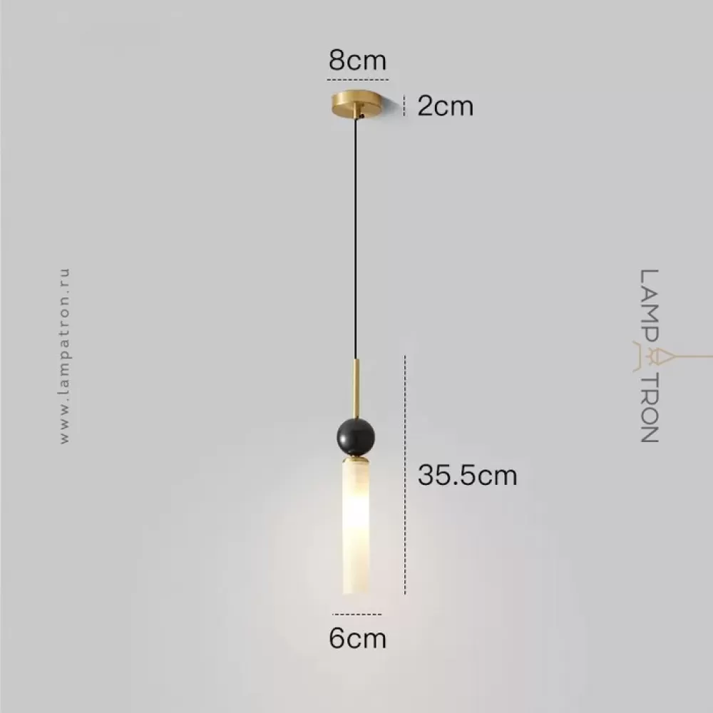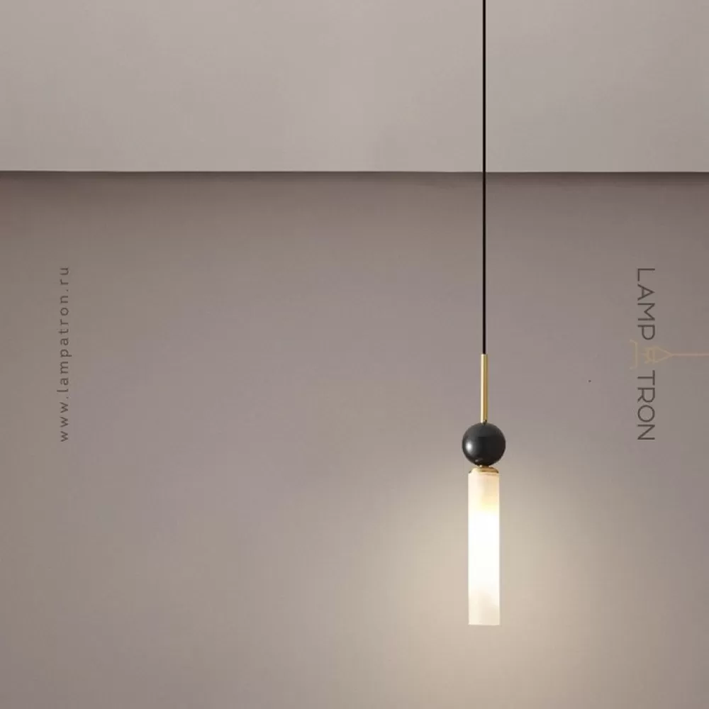 STENLY-ONE01. Подвесной светильник. Материал: латунь / мрамор / акрил; цвет декора: черный; цвет каркаса: черный; размеры (ширина × высота): 6 × 35 см; Диаметр потолочного крепления: 8 см; Длина подвеса: 1,5 м; тип цоколя: G9