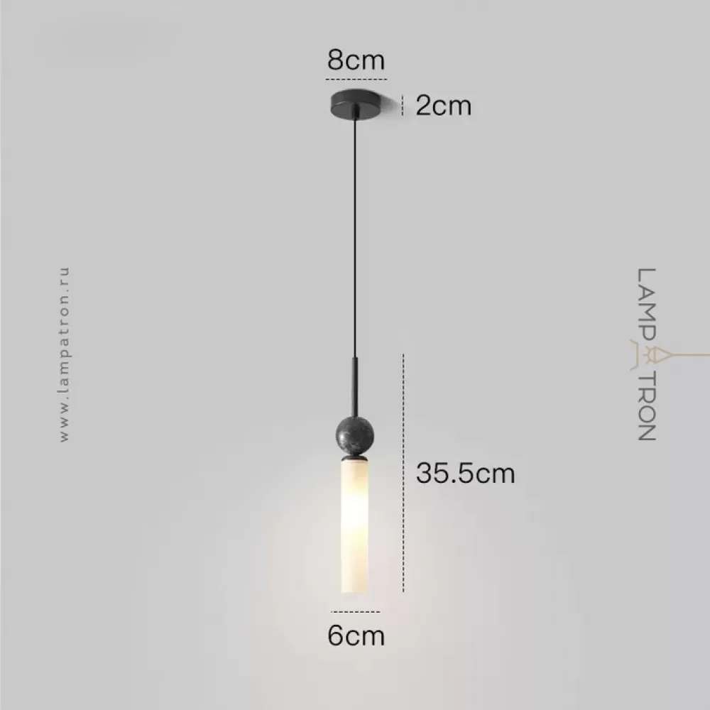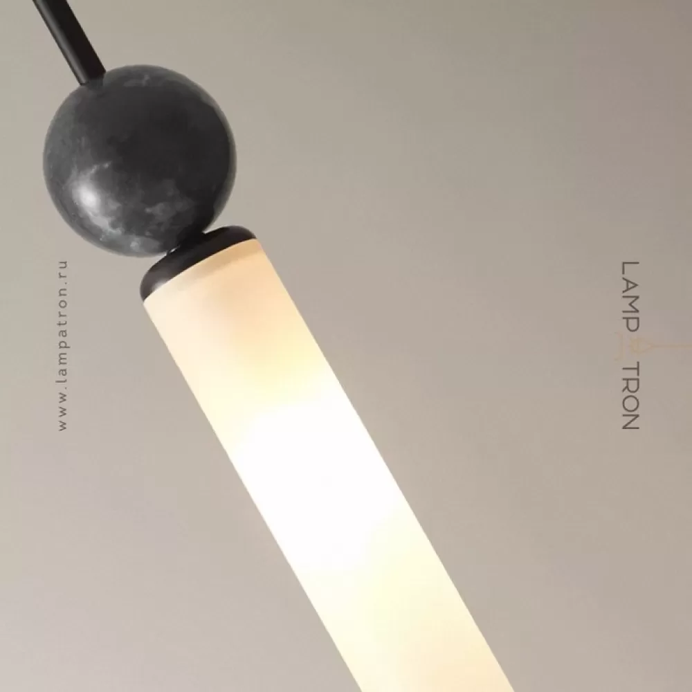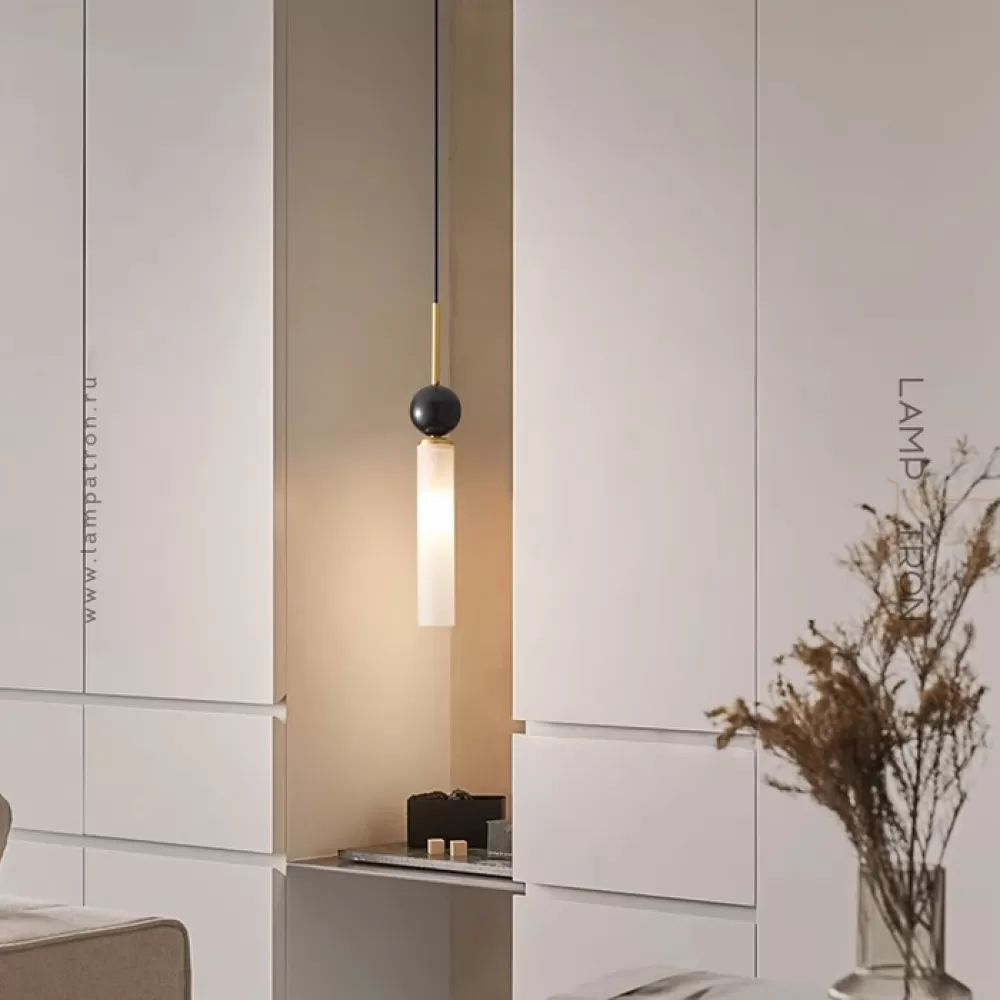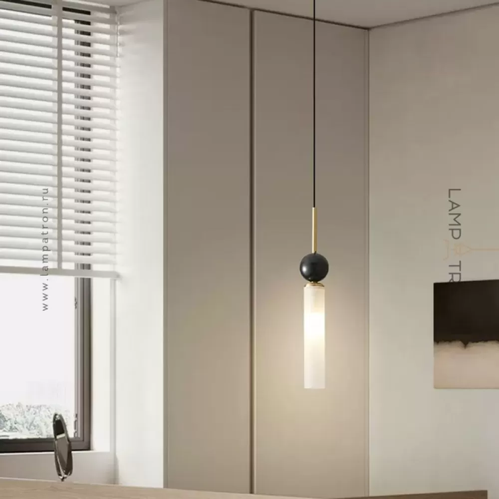 STENLY-ONE01. Подвесной светильник. Материал: латунь / мрамор / акрил; цвет декора: черный; цвет каркаса: черный; размеры (ширина × высота): 6 × 35 см; Диаметр потолочного крепления: 8 см; Длина подвеса: 1,5 м; тип цоколя: G9