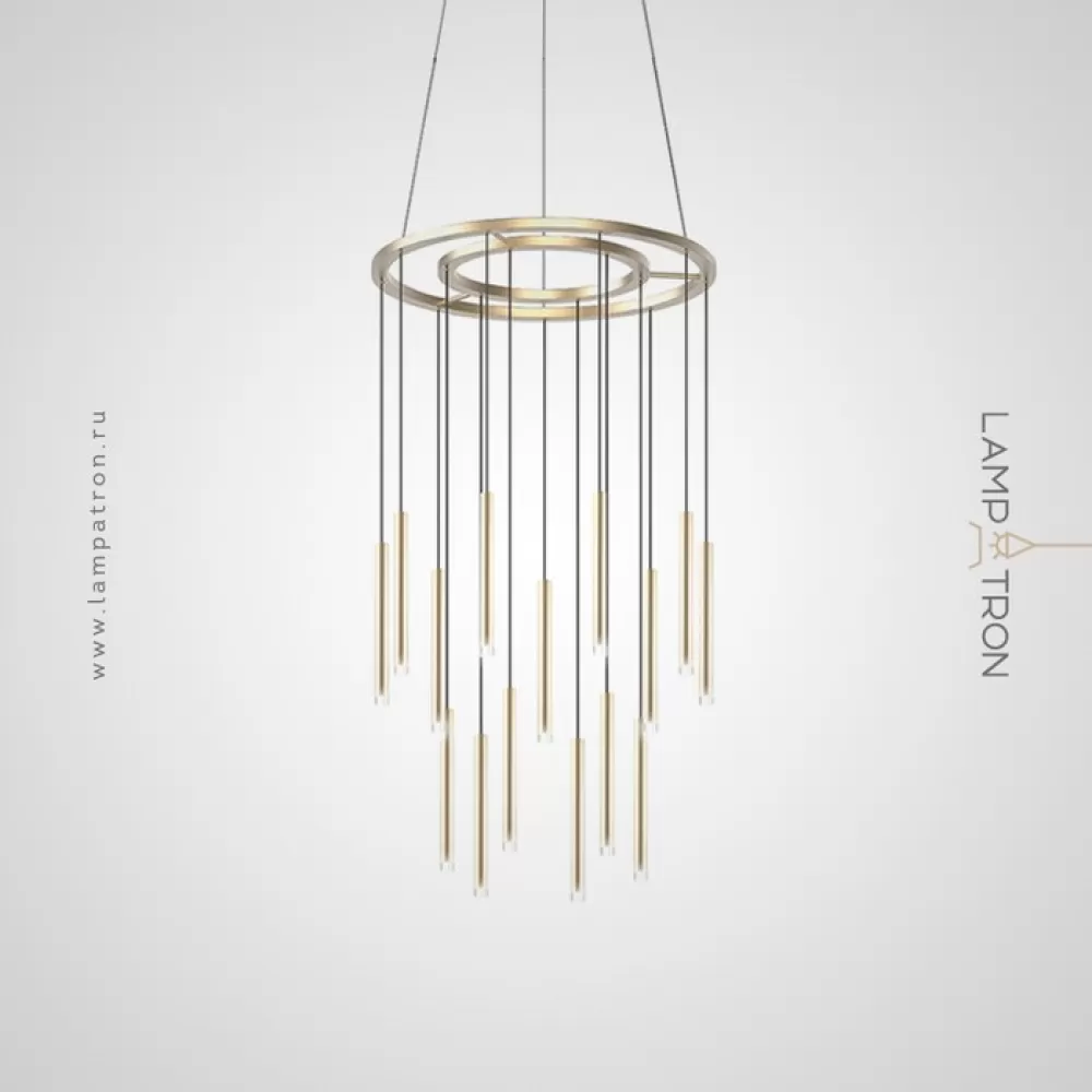 SYDNEY01. Подвесной светильник. Материал: металл / акрил; цвет каркаса: золото; 3 светильника; размеры (диаметр × высота): Ø 21,8 × 68,6 см (без подвеса); общая высота: 75−250 см; потолочное крепление (диаметр): Ø 21,8 см; тип источника: матрица LED (теплый свет); мощность: 9W; количество источников: 3