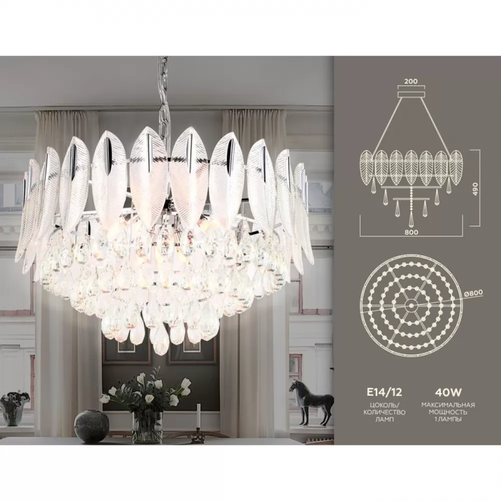 TR5184/12 CH/CL хром/прозрачный E14/12 max 40W D800*1190 Подвесная люстра с хрусталем