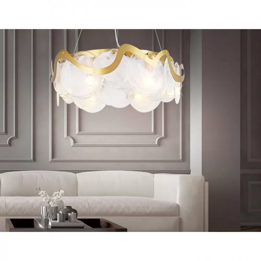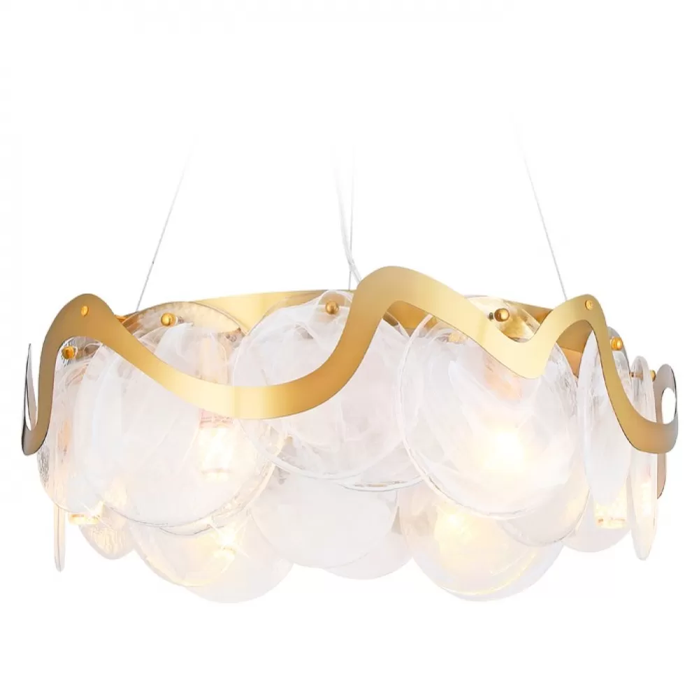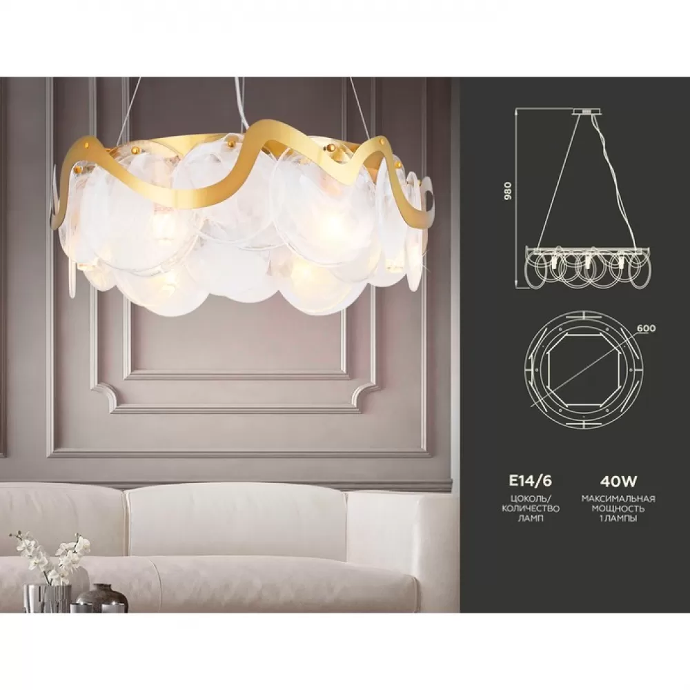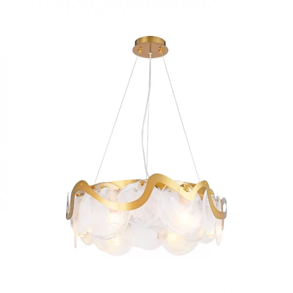 TR5326/6 GD/CL/FR золото/прозрачный/белый матовый E14/6 max 40W D600*980 Подвесная люстра с хрусталем