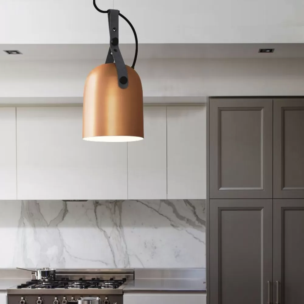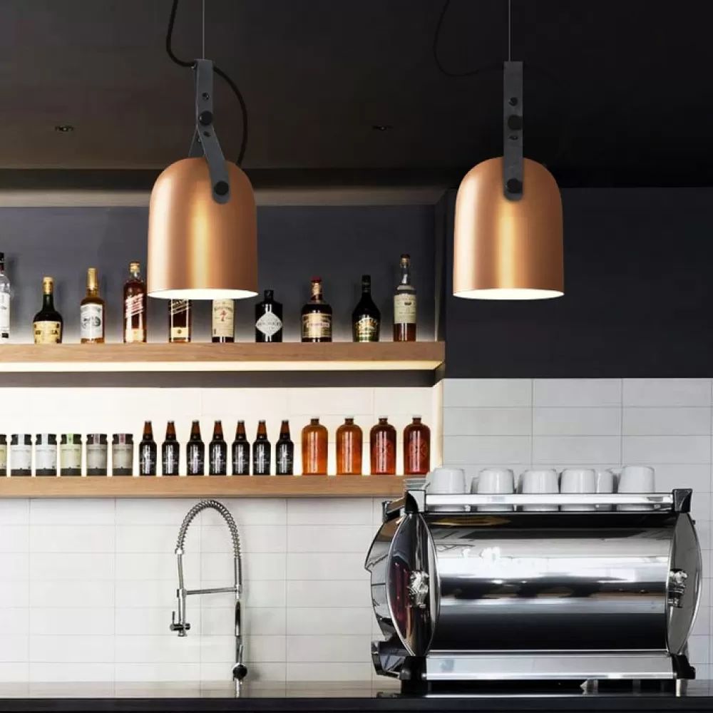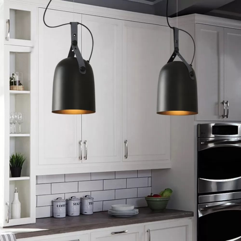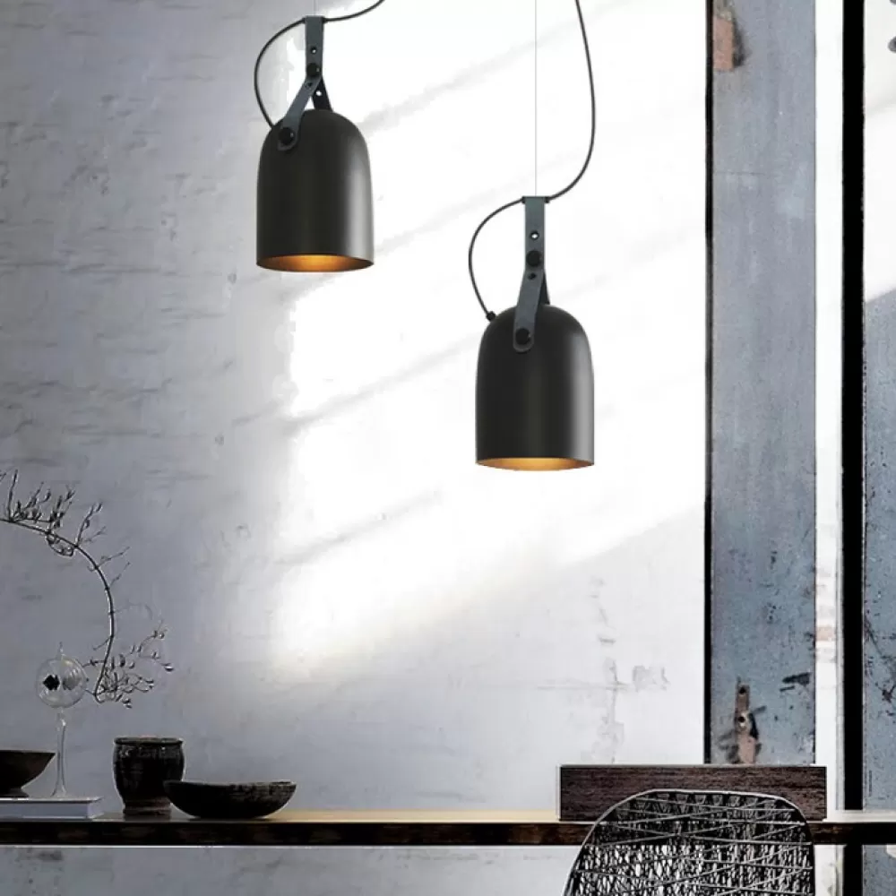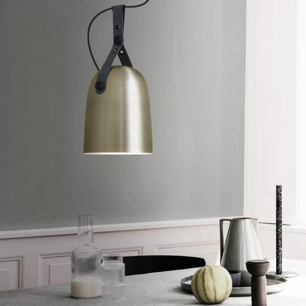 U01. Подвесной светильник. Материал: металл / экокожа; цвет: черный; размеры (диаметр × высота): Ø 18 × 23 см, с ремнем 40 см; потолочное крепление: Ø 10; длина провода: 150 см; тип цоколя: Е27; количество источников: 1