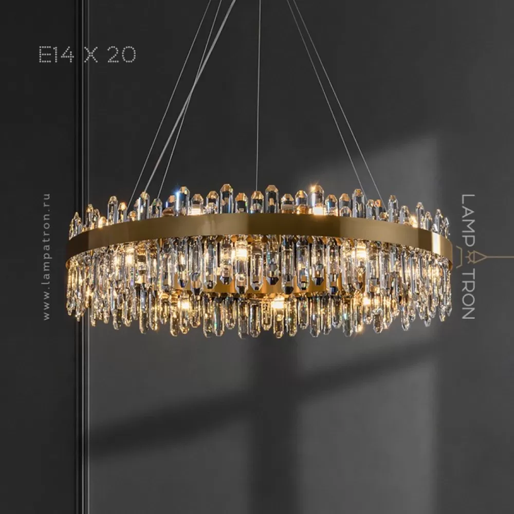 Серия кольцевых люстр с хрустальными рассеивателями в виде кристаллов