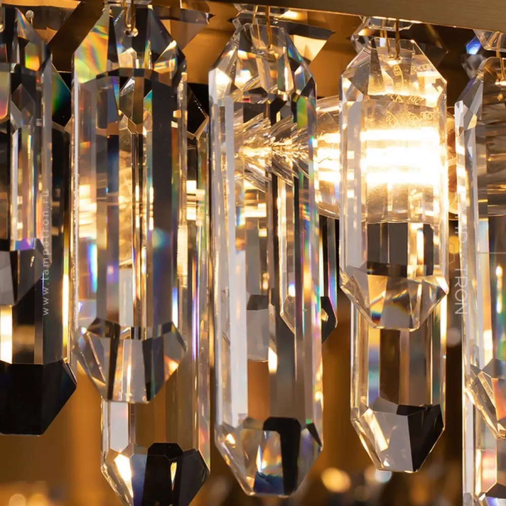 VALERY01. Люстра. Материал: металл/хрусталь К9; цвет корпуса: латунь; размеры (диаметр × высота): Ø 40 × 24 см; длина подвеса: 120 см; тип цоколя: E14; количество источников: 8