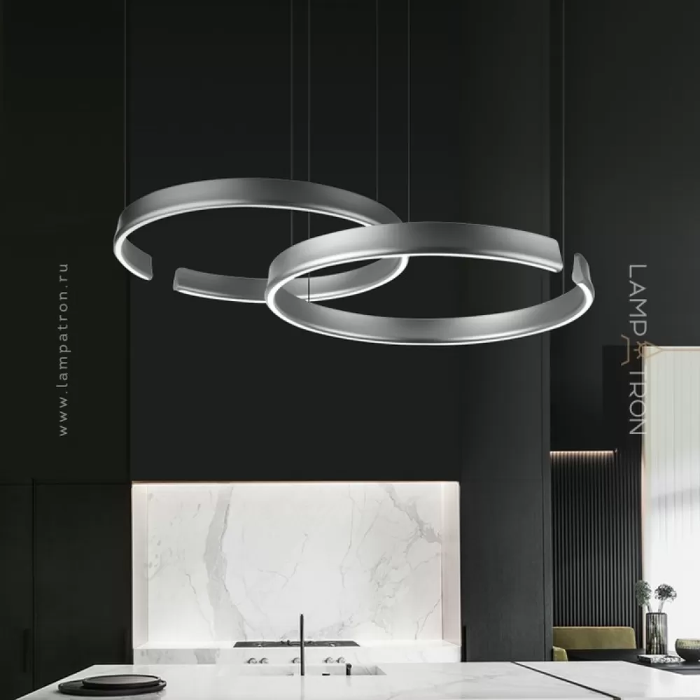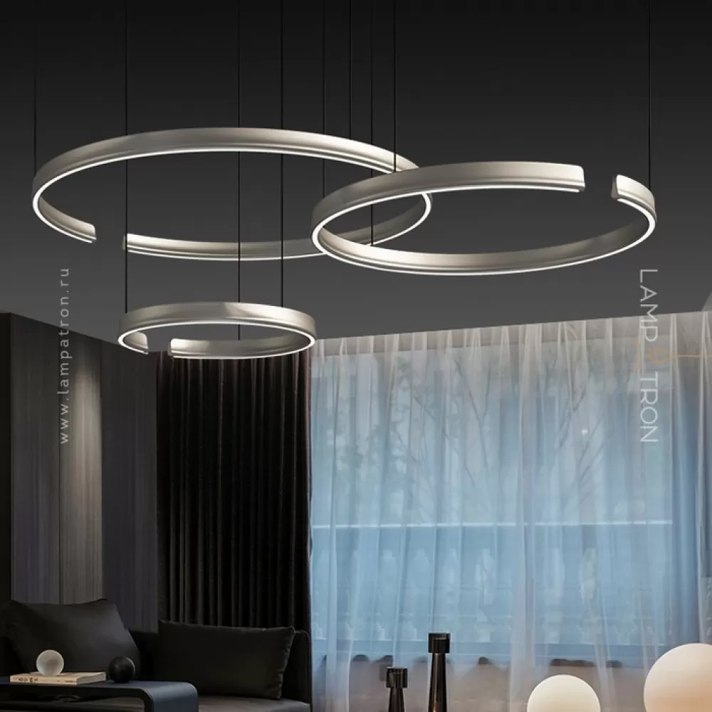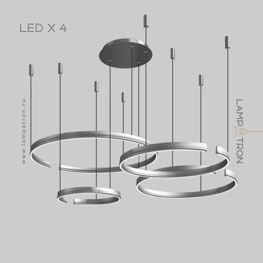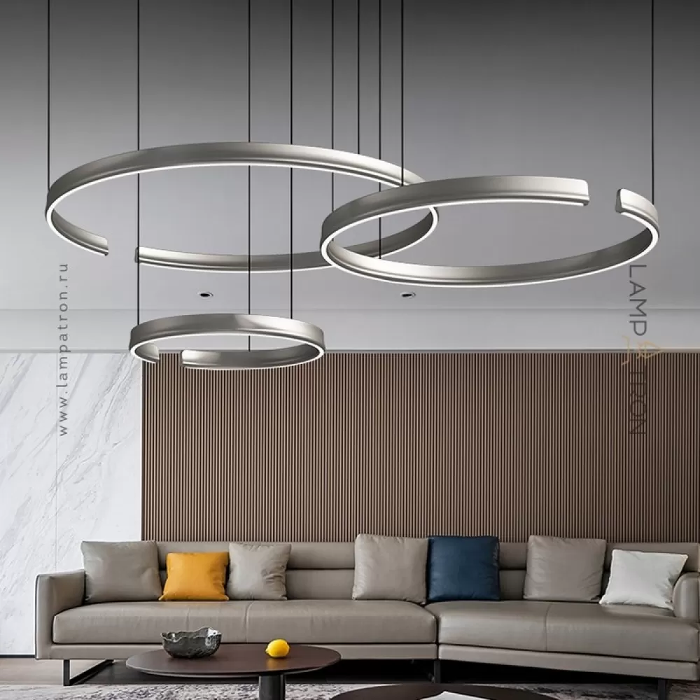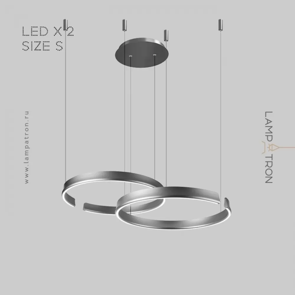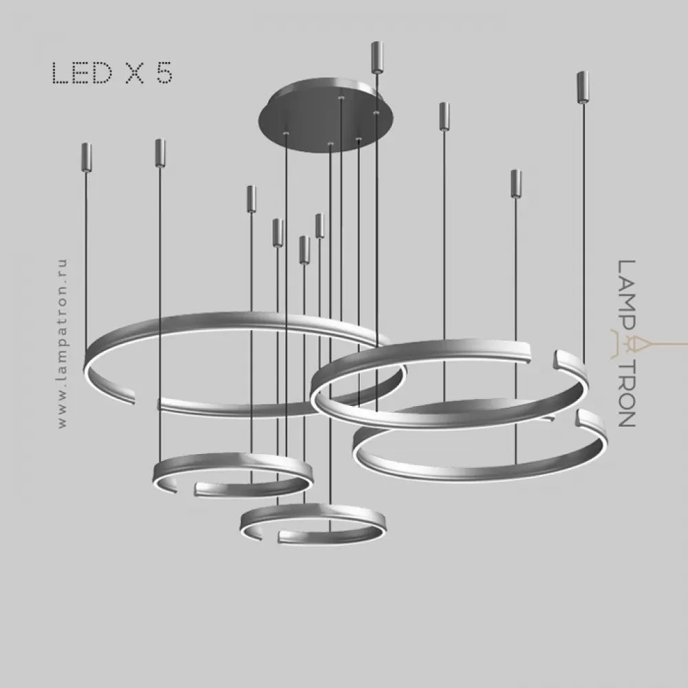 Серия светодиодных люстр в виде комбинации разомкнутых колец разного диаметра