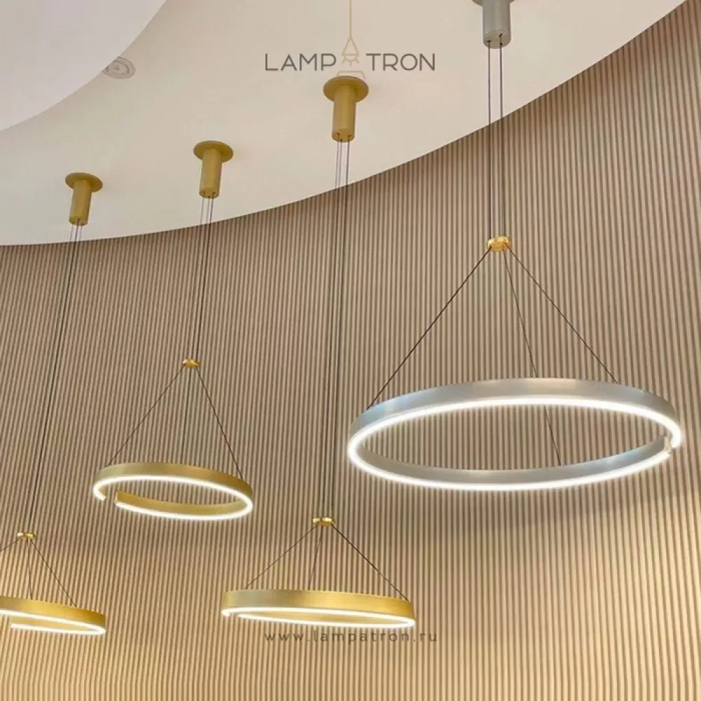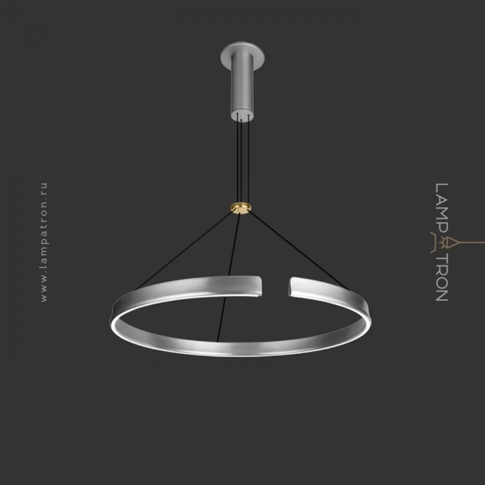 Серия светодиодных люстр с металлическим корпусом в виде разомкнутого кольца на струнном подвесе