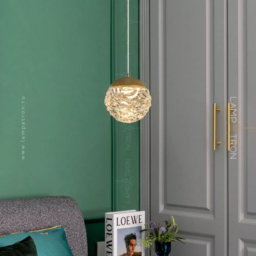 Подвесной светодиодный светильник с шарообразным плафоном из рельефного стекла