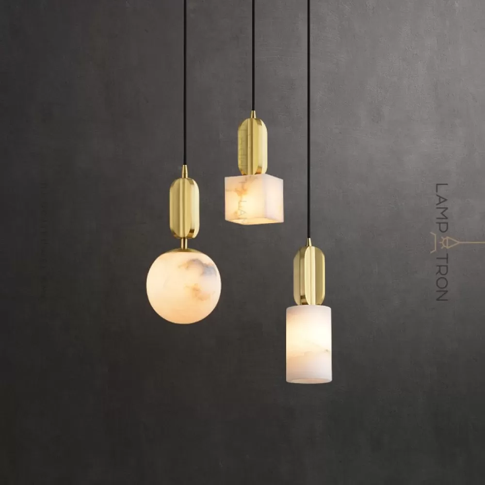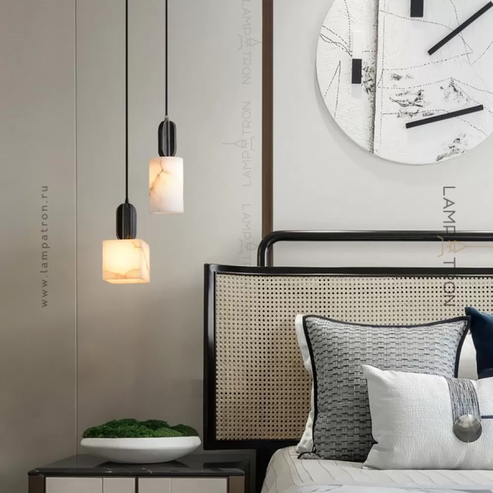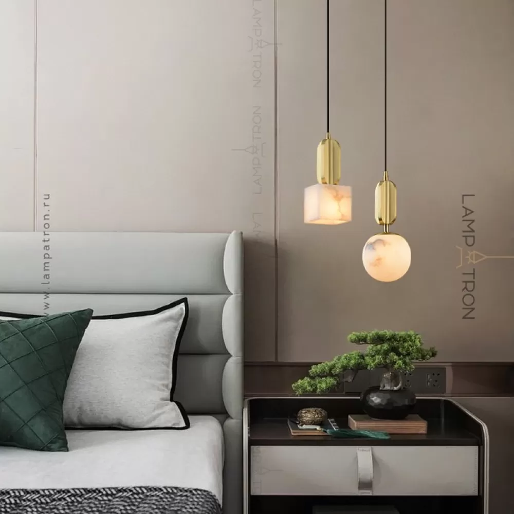 Серия подвесных светильников с плафонами различных геометрических форм из натурального белого мрамора