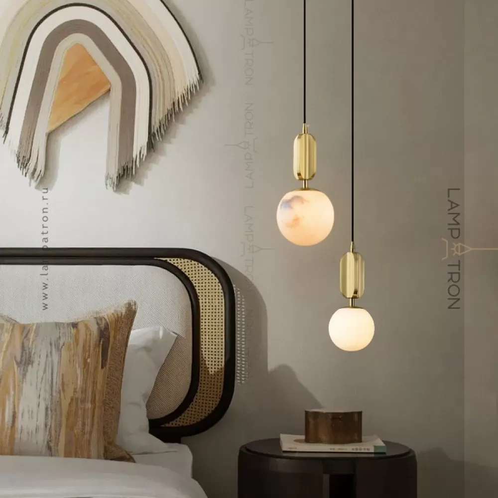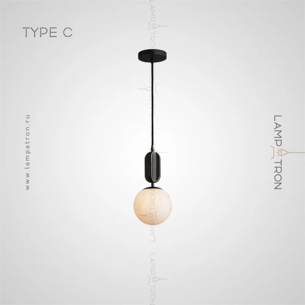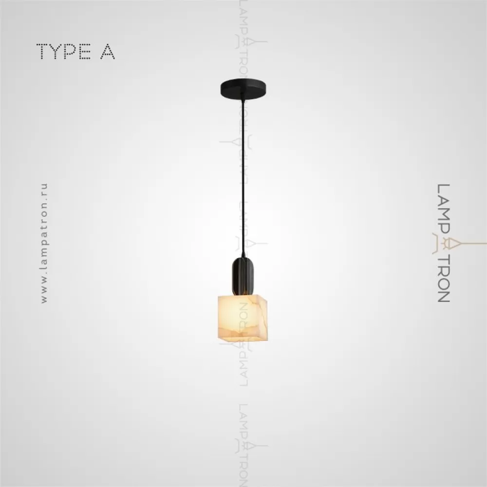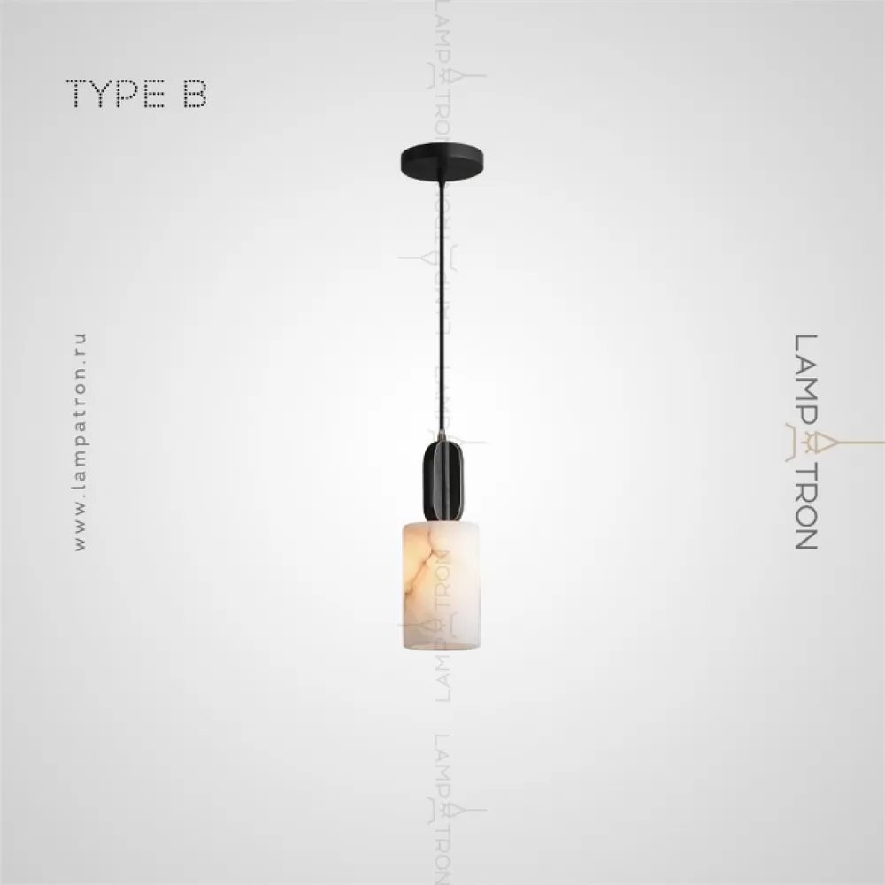 Серия подвесных светильников с плафонами различных геометрических форм из натурального белого мрамора