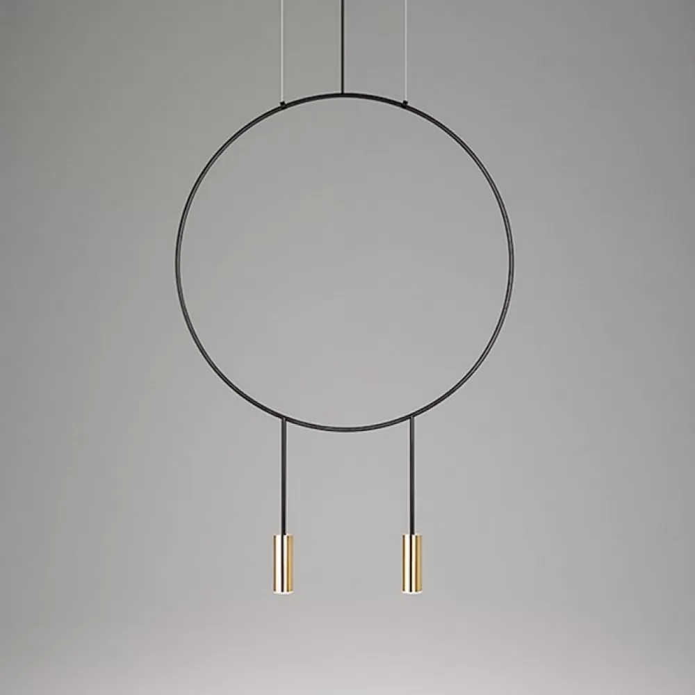 VILF01. Подвесной светильник. Материал: металл; цвет каркаса: черный; цвет плафона: золото; размеры: кольцо (диаметр): Ø 38 см; подвесной элемент: 10 см; потолочное крепление (длина): 20 см; длина провода: 100 см; тип цоколя: G9; количество источников: 1