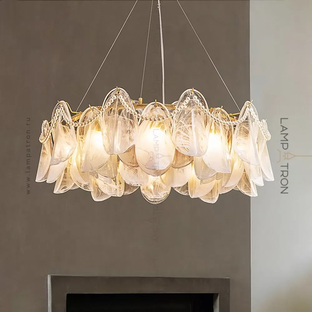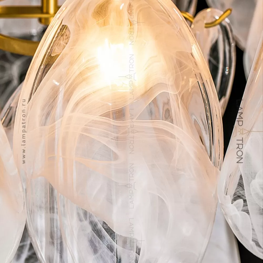 Серия кольцевых люстр с листовидными рассеивателями из рельефного стекла и с эффектом «белый дым»