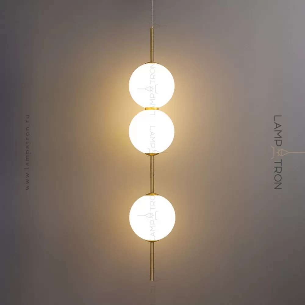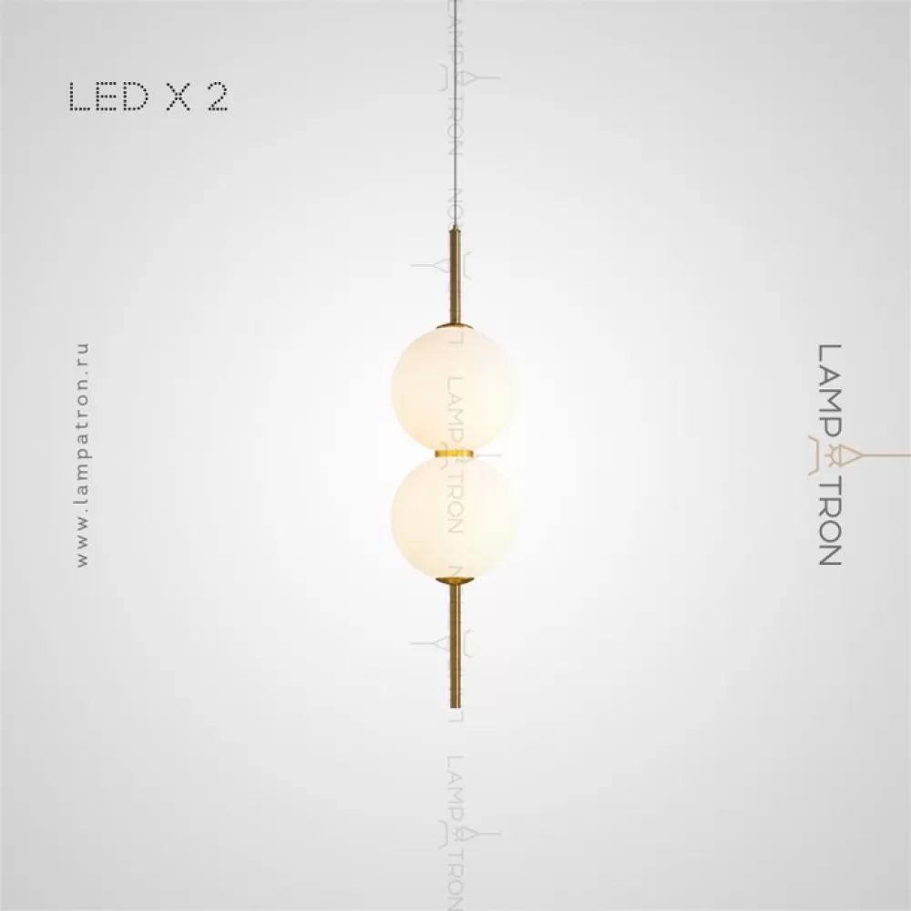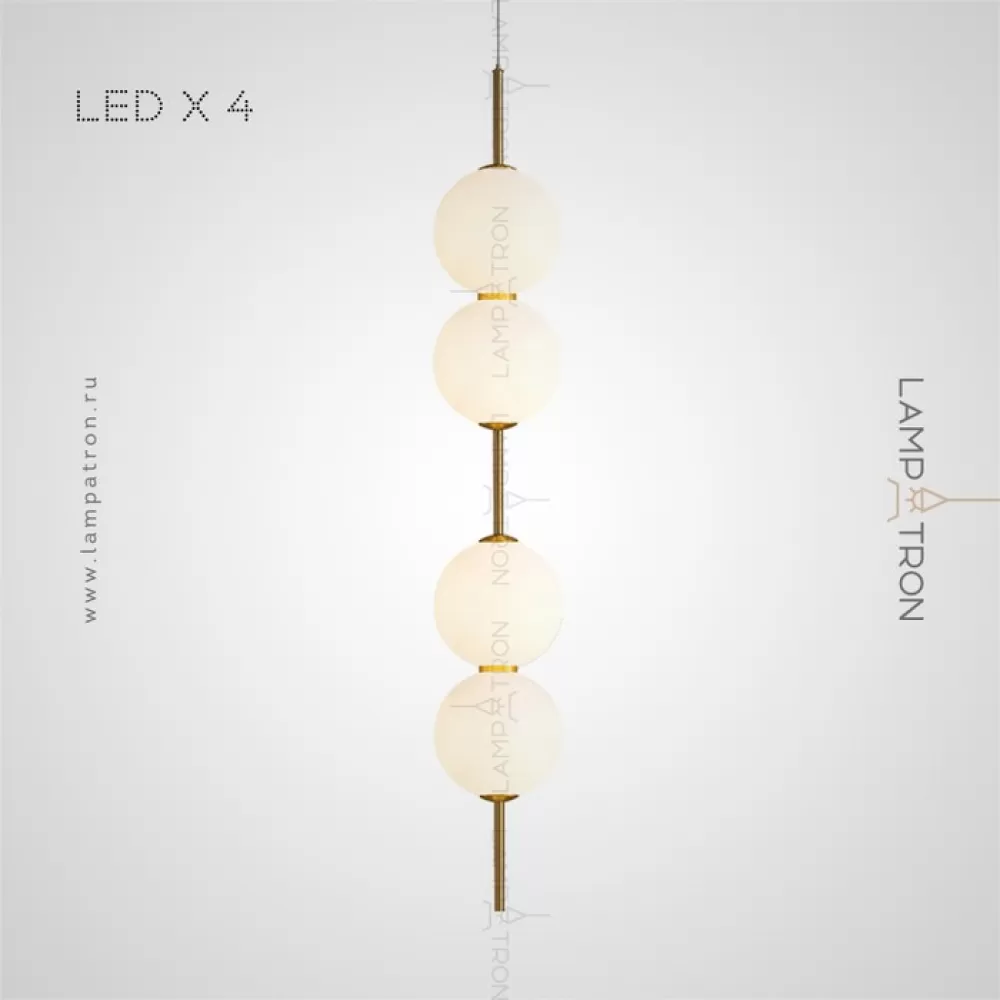 Серия подвесных светодиодных светильников со стеклянными шарообразными плафонами, собранными на латунной стойке