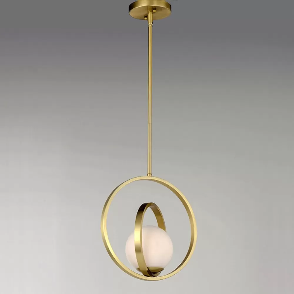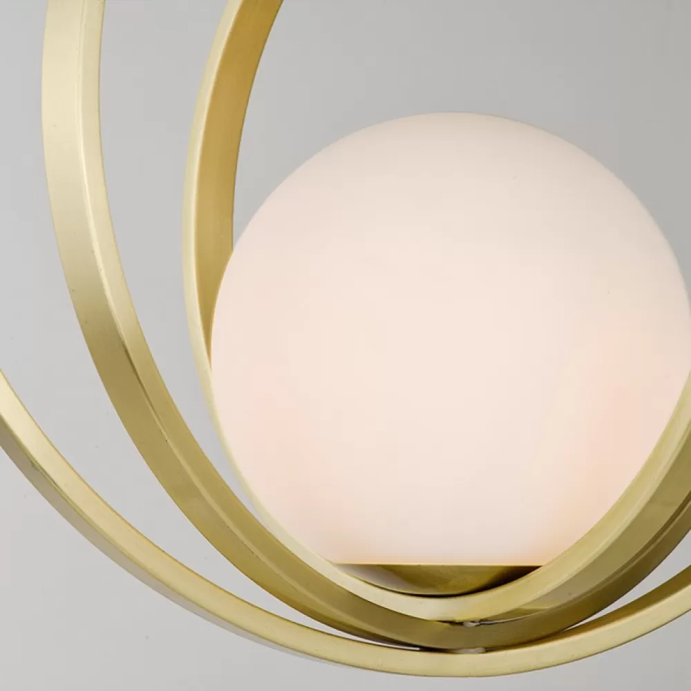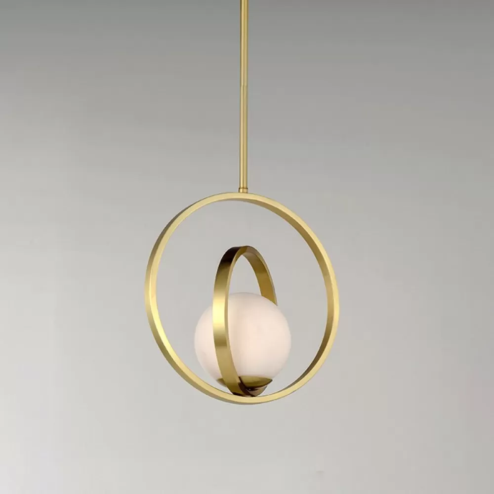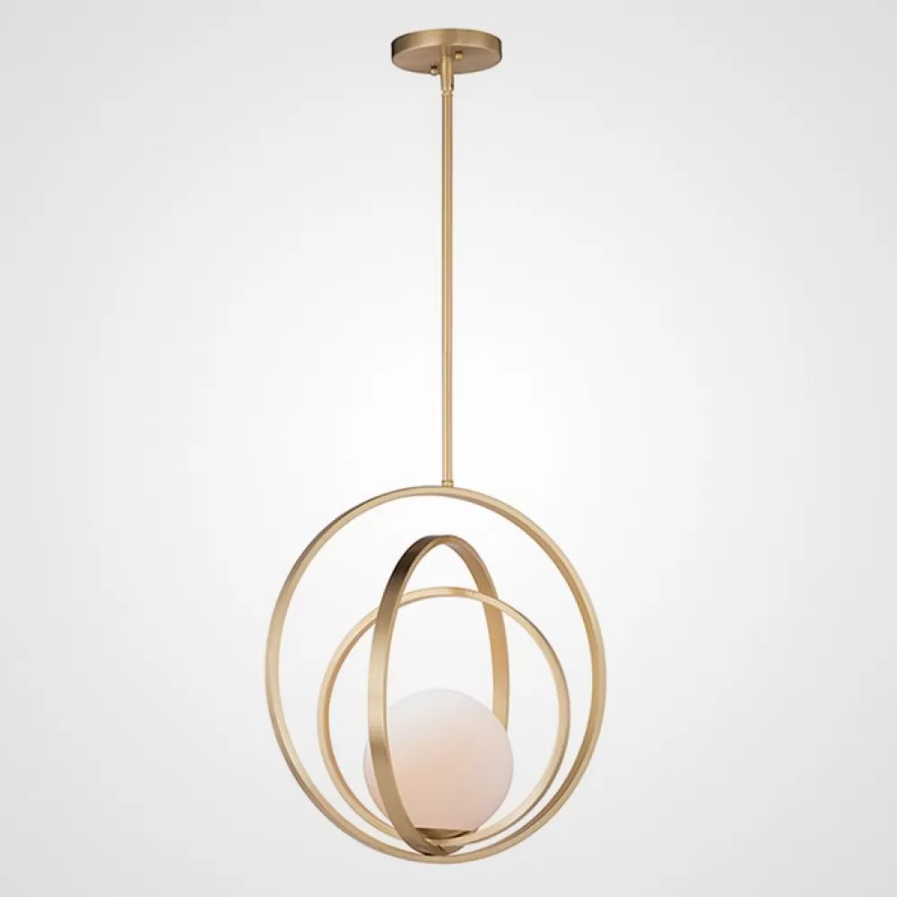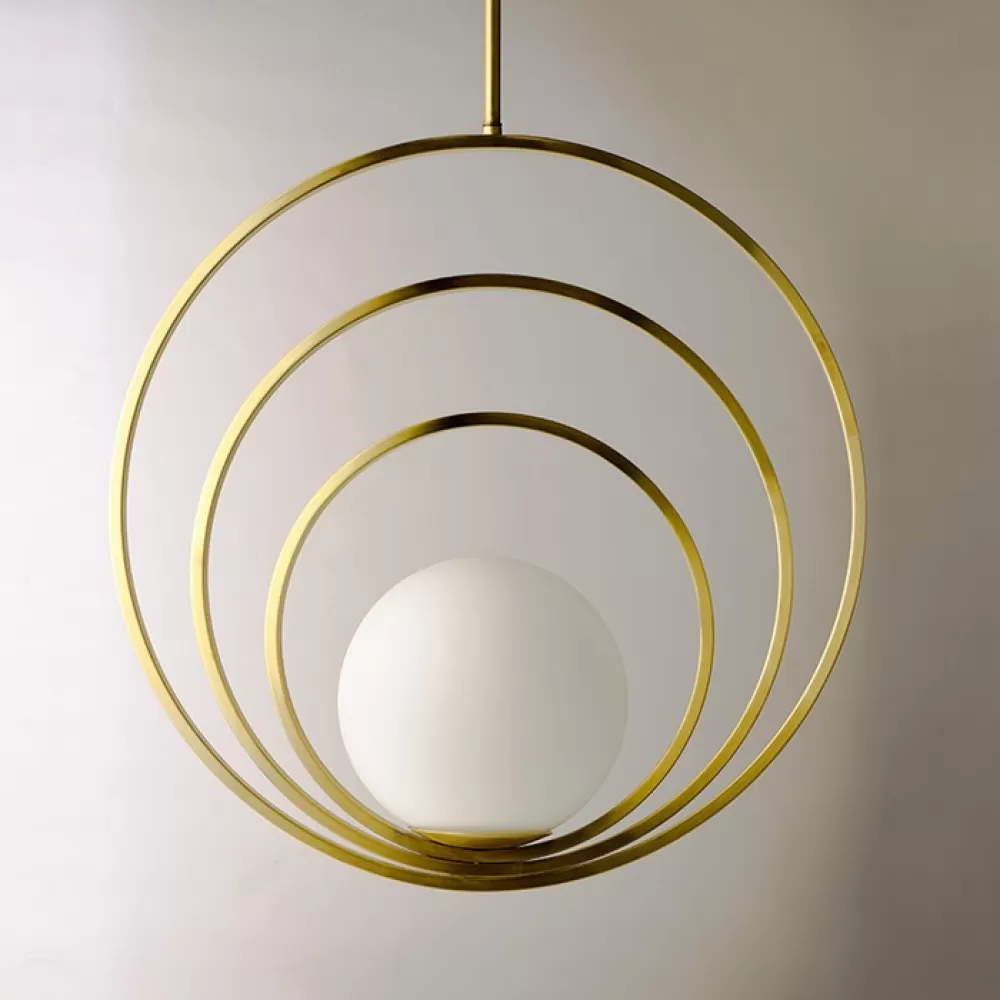 Подвесной светильник в скандинавском стиле со стеклянным плафоном в каркасе из колец