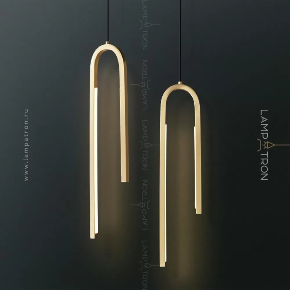 Серия подвесных светодиодных светильников с вытянутыми прямоугольными LED-панелями на разноуровневом дугообразном корпусе