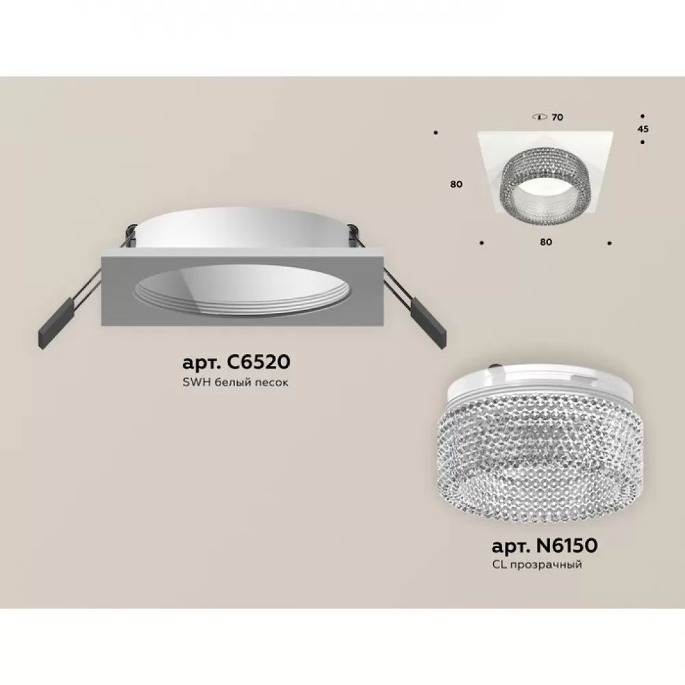 XC6520040 SWH/CL белый песок/прозрачный MR16 GU5.3 (C6520, N6150) Комплект встраиваемого светильника с композитным хрусталем