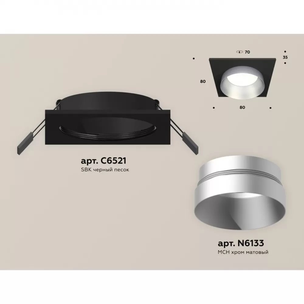XC6521023 SBK/MCH черный песок/хром матовый MR16 GU5.3 (C6521, N6133) Комплект встраиваемого светильника