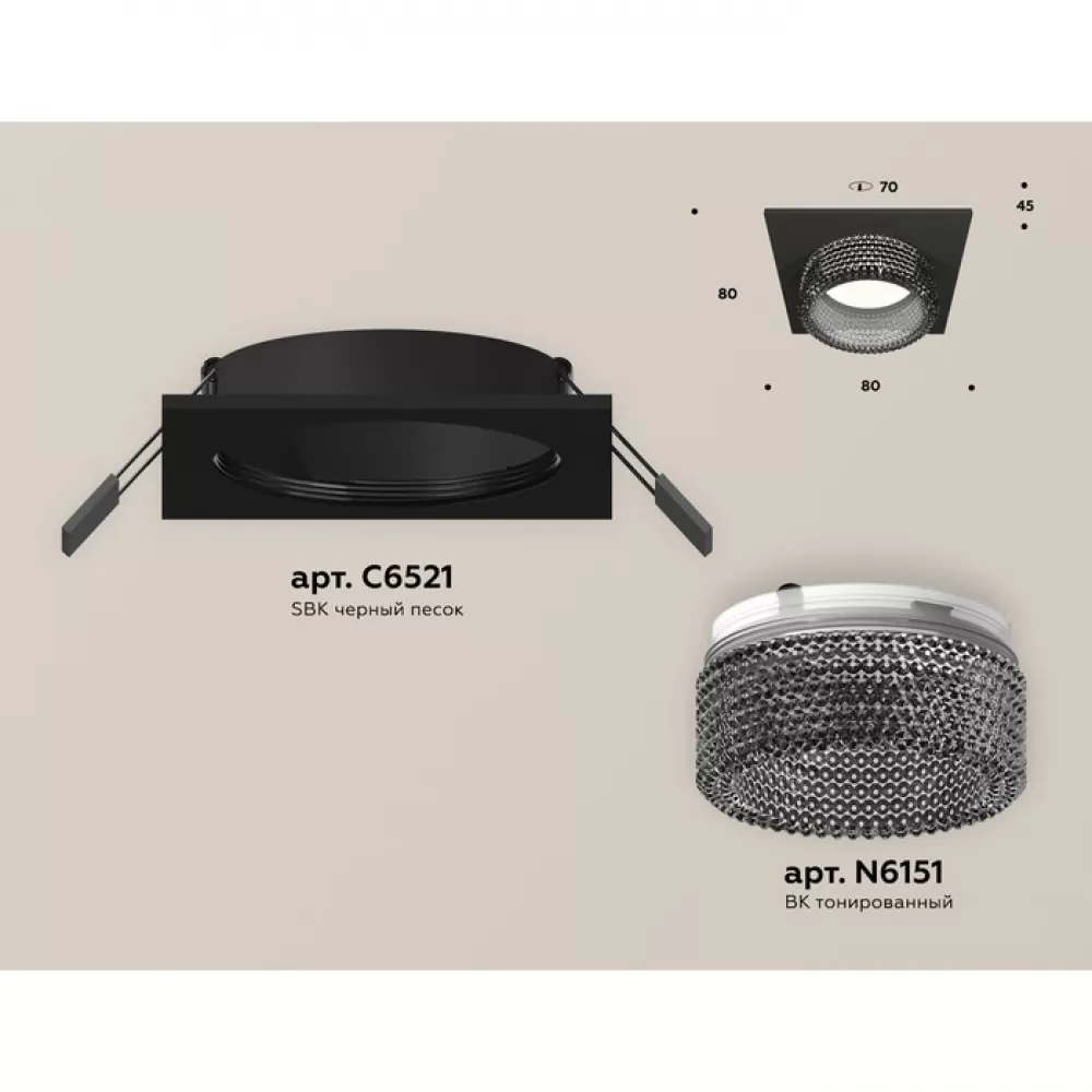 XC6521041 SBK/BK черный песок/тонированный MR16 GU5.3 (C6521, N6151) Комплект встраиваемого светильника с композитным хрусталем
