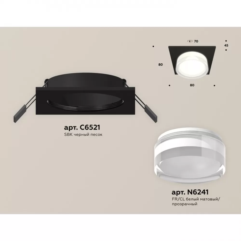 XC6521066 SBK/FR/CL черный песок/белый матовый/прозрачный MR16 GU5.3 (C6521, N6241) Комплект встраиваемого светильника с акрилом